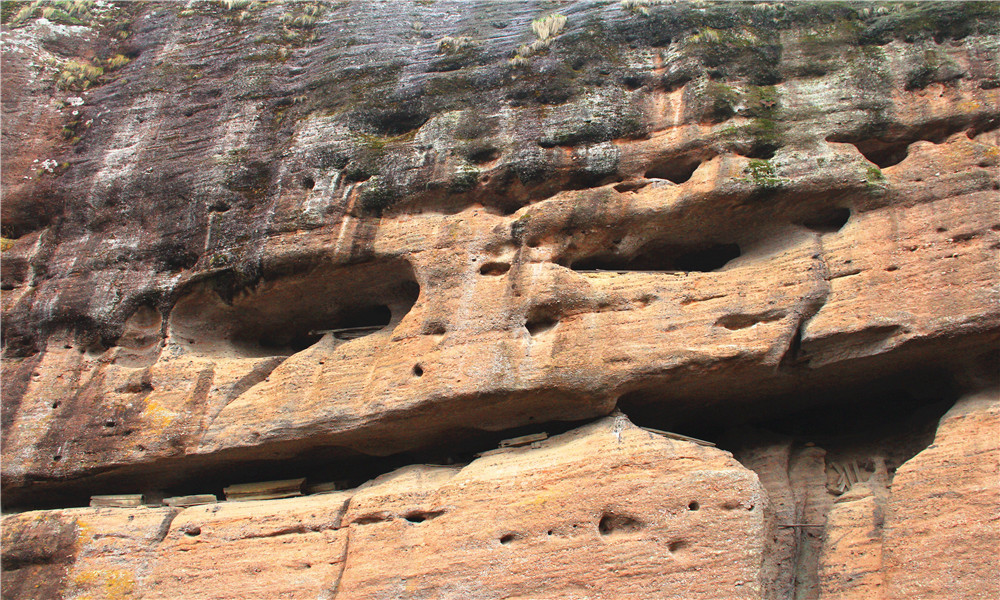 仿古吊装法升置棺木的过程,如今已经在龙虎山展现,并成为龙虎山一个固定表演节目,这个节目就设置在仙水岩悬棺比较集中的飞云阁。