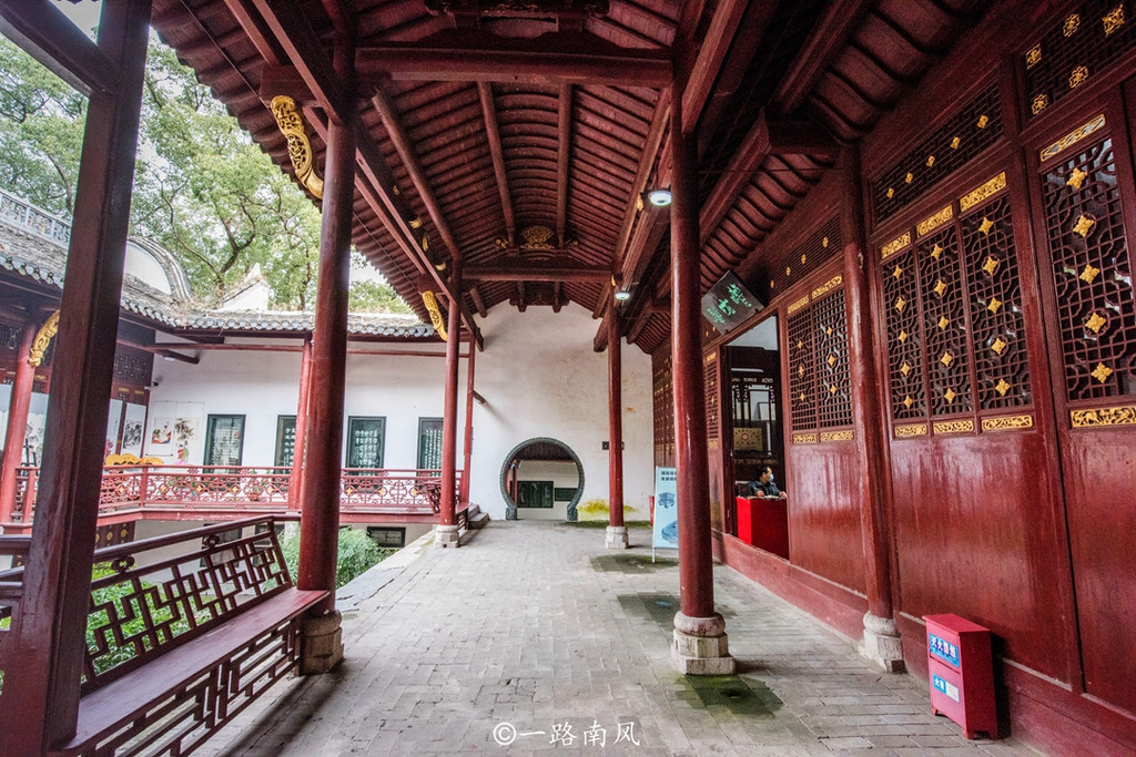 白墙黛瓦,红柱檐角,曲径通幽,长廊外的露天部分建有假山,墙角植有翠竹,各式景物互相辉映,呈现出唯美的江南诗画图,此景不输苏州园林。