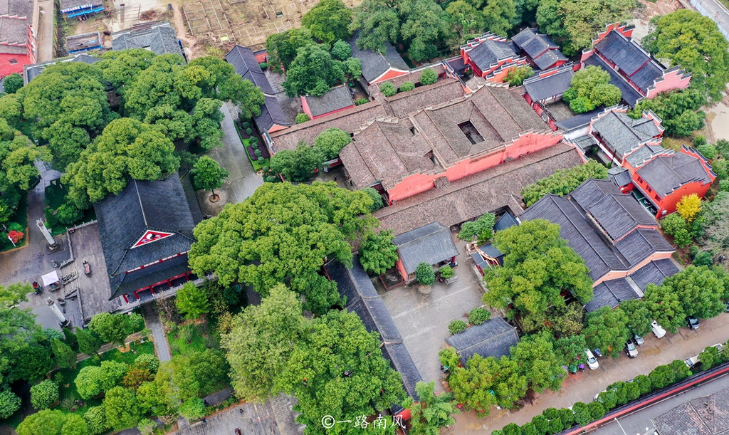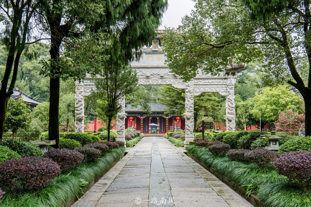 龙虎山天师府为王府式道教建筑群,主要建筑沿中轴线有序分布,建筑物以红色间灰黑色为主基调,整体上雄伟大方,古朴典雅。