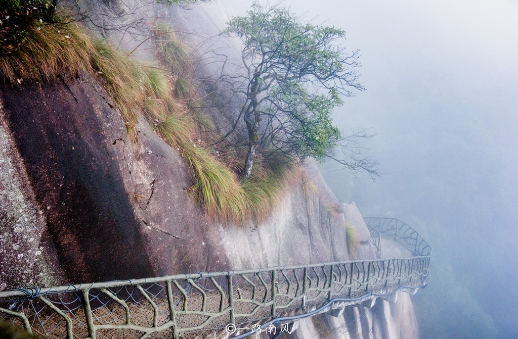 三清山的栈道修于悬崖峭壁中间,面对苍茫云海,天气晴朗的时候可以看到“万丈深渊”,胆小的人走在上面多少有点胆颤心惊,不过一路景色美不胜收,小走一段路克服了心理上的障碍,剩下的只有发自内心的赞叹。