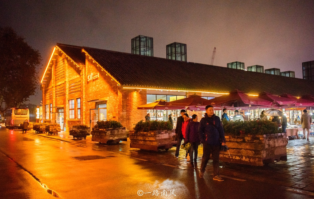 这是一个由老厂房改造的创意街区,夜景非常迷人。