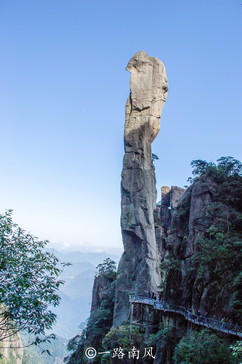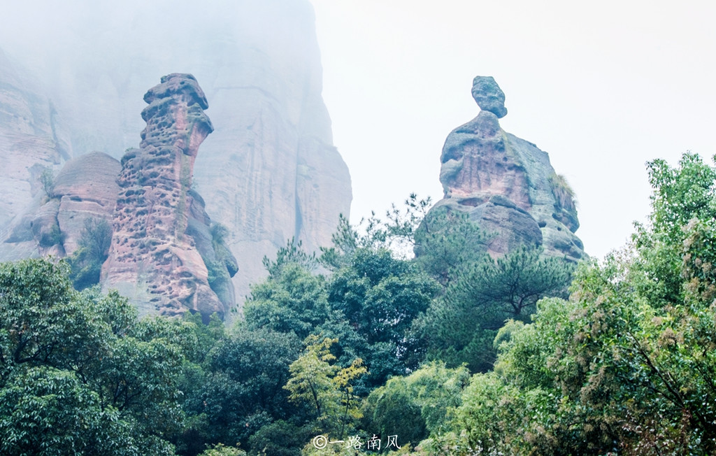 大多数丹霞地貌区的山体都以丰腴形态为主,龟峰风景区在这个基础上出现了更多形态各异的纤瘦版,至少在我已经游览过的众多丹霞地貌景区里,并没有类似的风格。