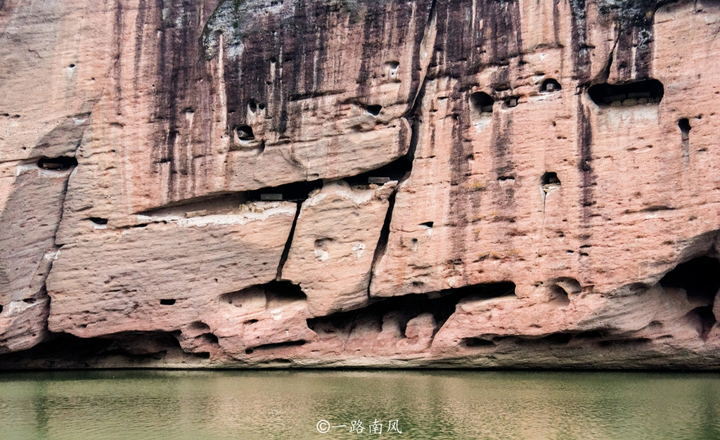 仙水岩一带的峭壁就像一面面垂直的巨石屏障,这些“屏障”分布着众多大小、形状不一的洞穴,有的洞穴距离水面百米以上,即使在当代,普通人也无法到达洞口,何况将棺木妥善地安置在洞穴内。