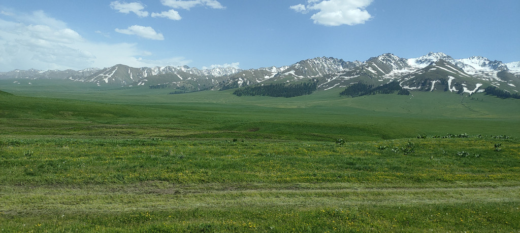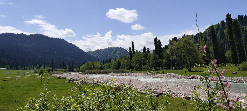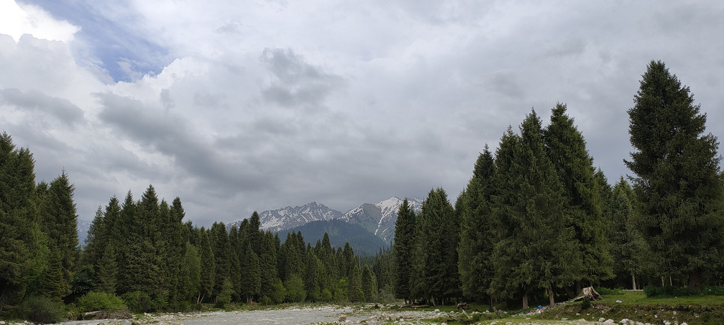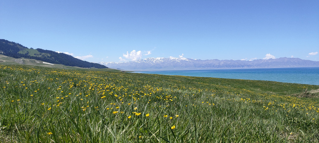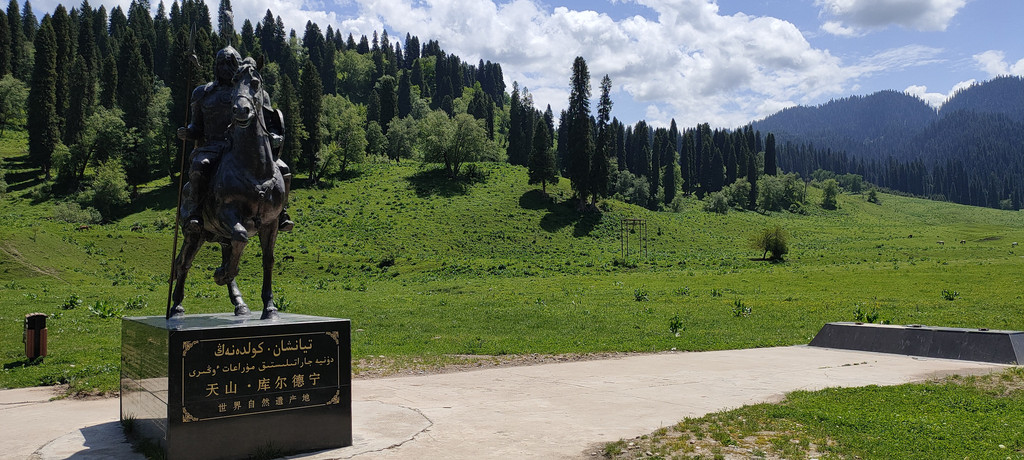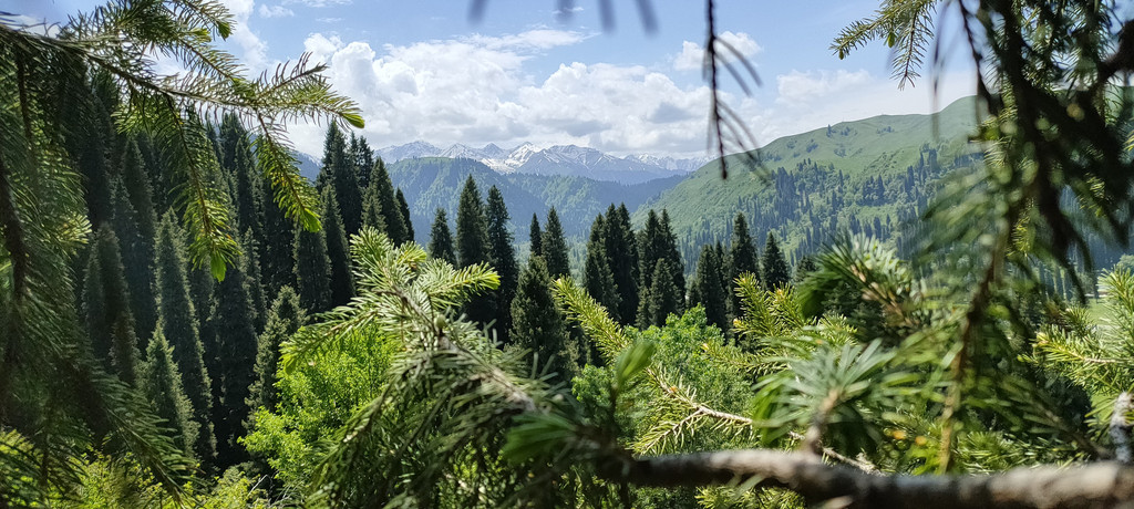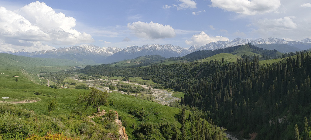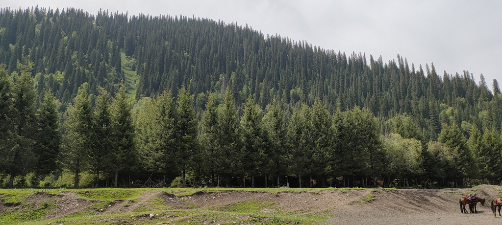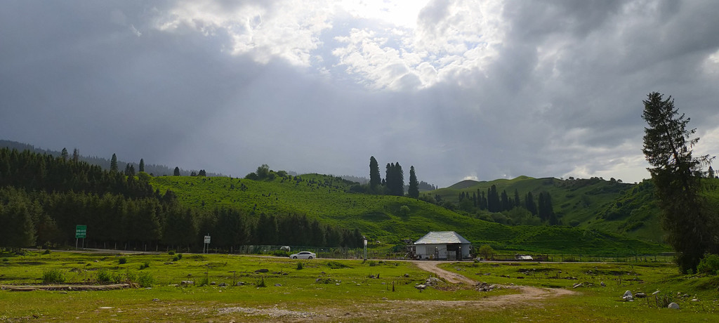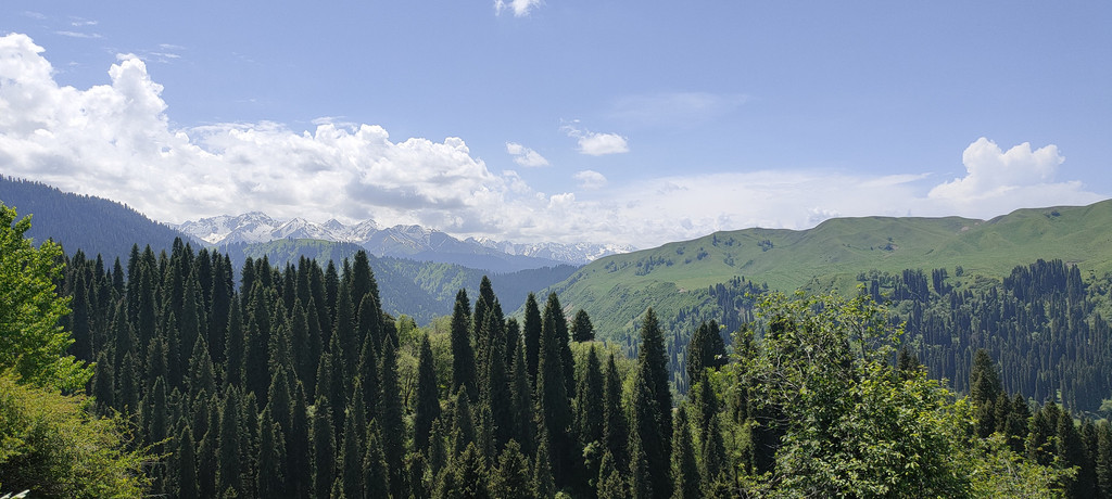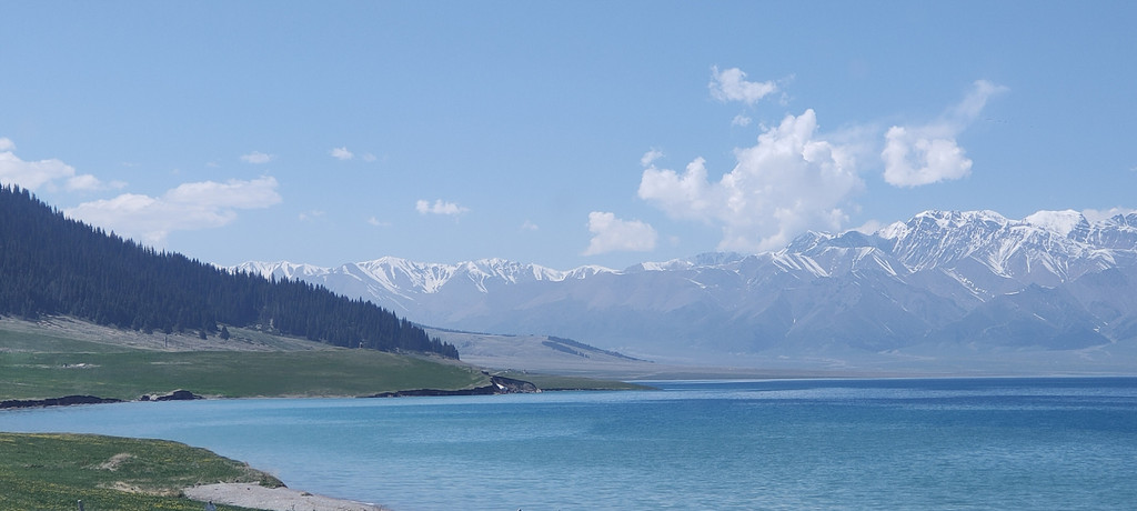 早晨十点,打包点干粮,备着好心情,一路经过霍城县(没错,就霍尔果斯口岸那)、新源县,果子沟大桥秘境,便打开一个蓝色的世界,嚯,这是真实存在的吗,雪山,蓝色的湖,雪杉,草原,仿佛是极不相称,确实融洽和谐,有点瓦尔登湖那味儿。