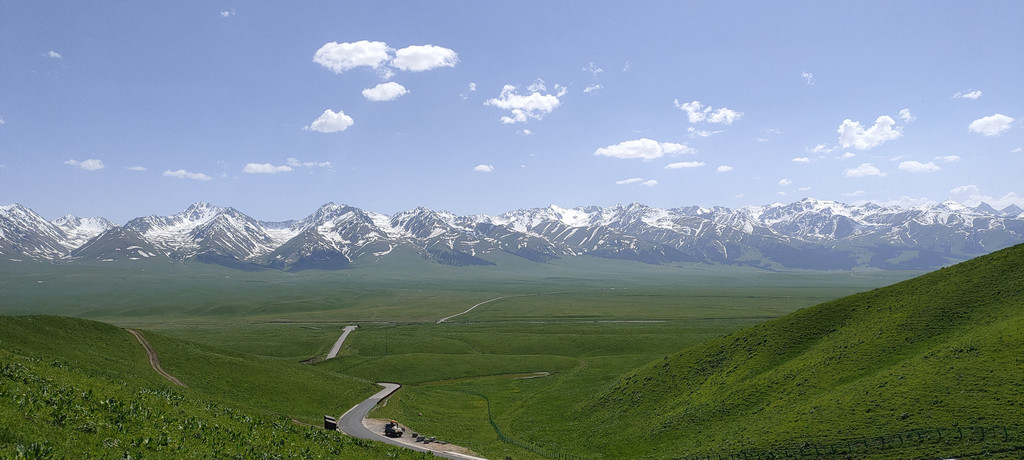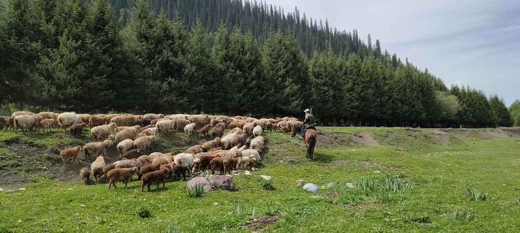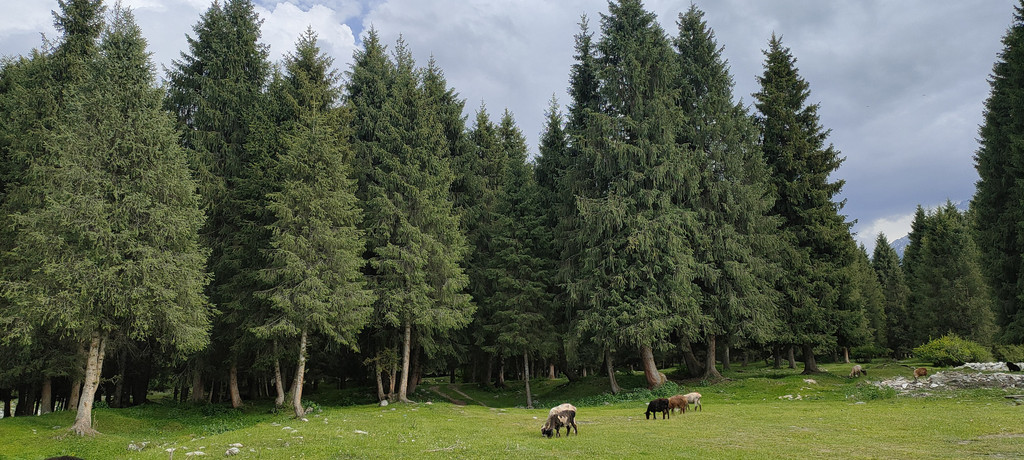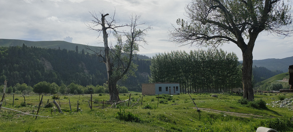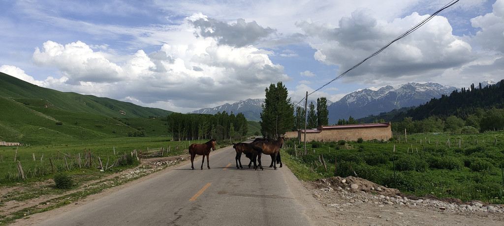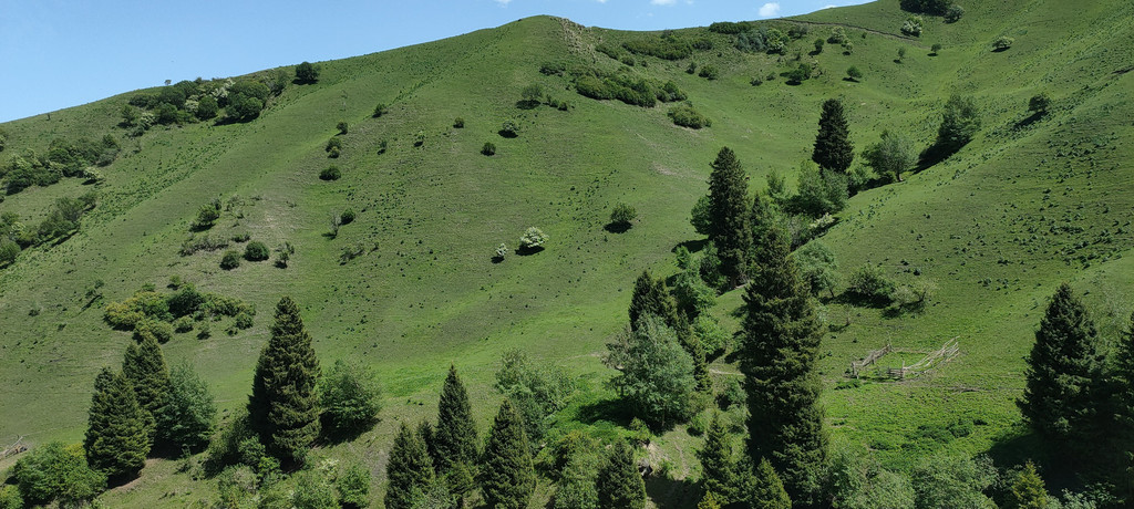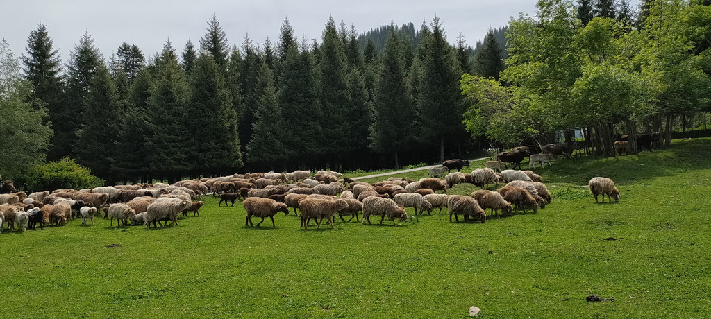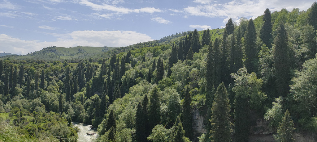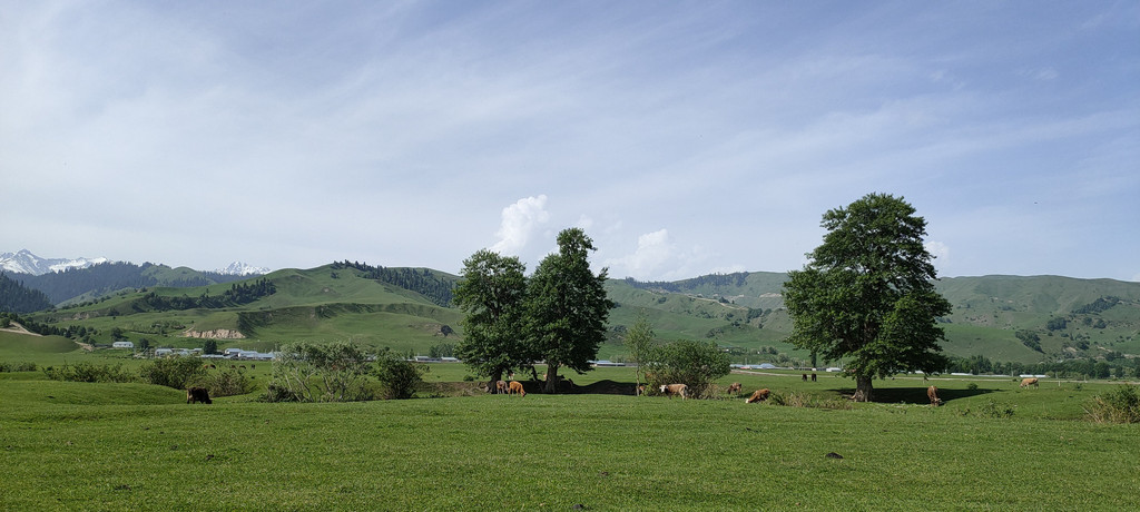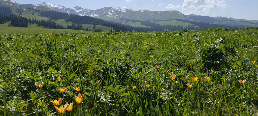 早晨十点,打包点干粮,备着好心情,一路经过霍城县(没错,就霍尔果斯口岸那)、新源县,果子沟大桥秘境,便打开一个蓝色的世界,嚯,这是真实存在的吗,雪山,蓝色的湖,雪杉,草原,仿佛是极不相称,确实融洽和谐,有点瓦尔登湖那味儿。