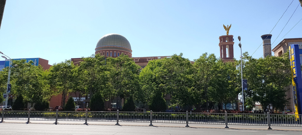 塞外江南,还是有江南的样子的,郁郁葱葱,但太阳也太毒了。诺,伊宁火车站还是别具一格的。