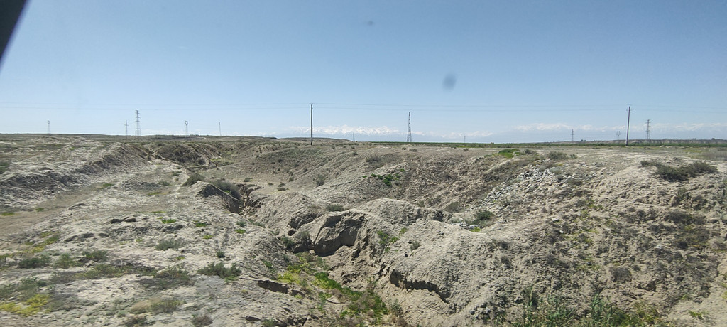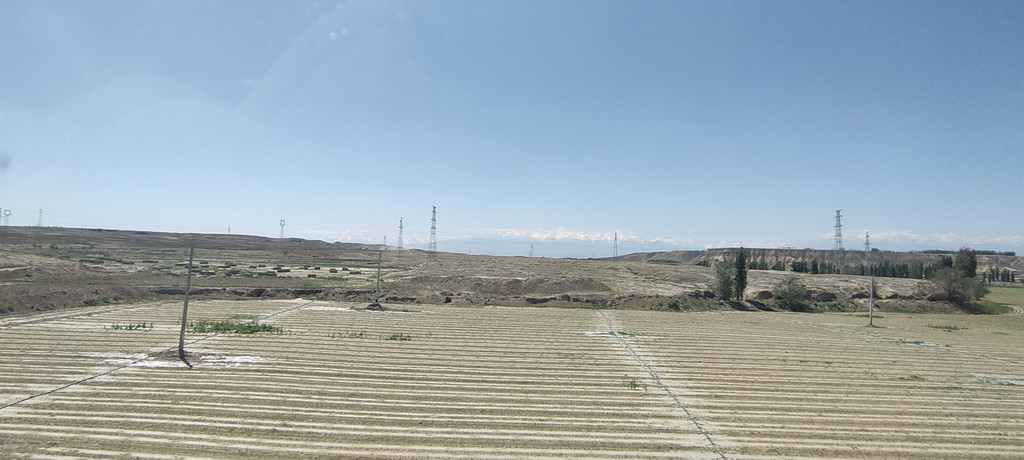 看似贫瘠的戈壁滩,远处确实连绵的雪山,有点魔幻,贫乏中孕育着希望。