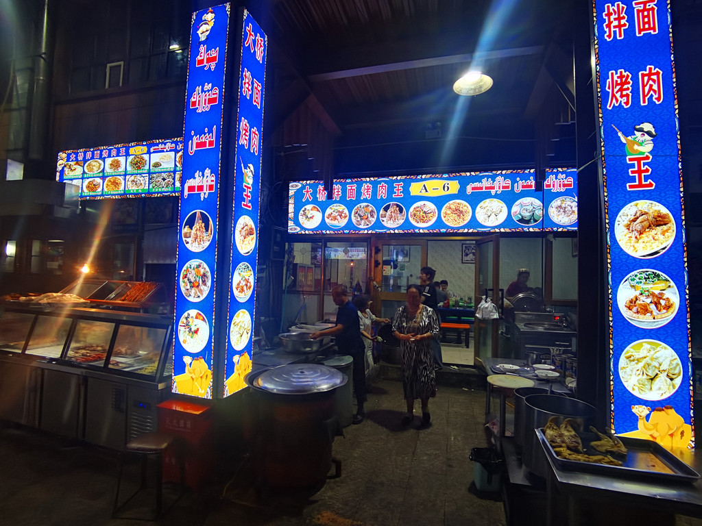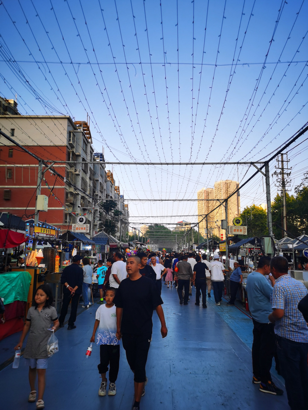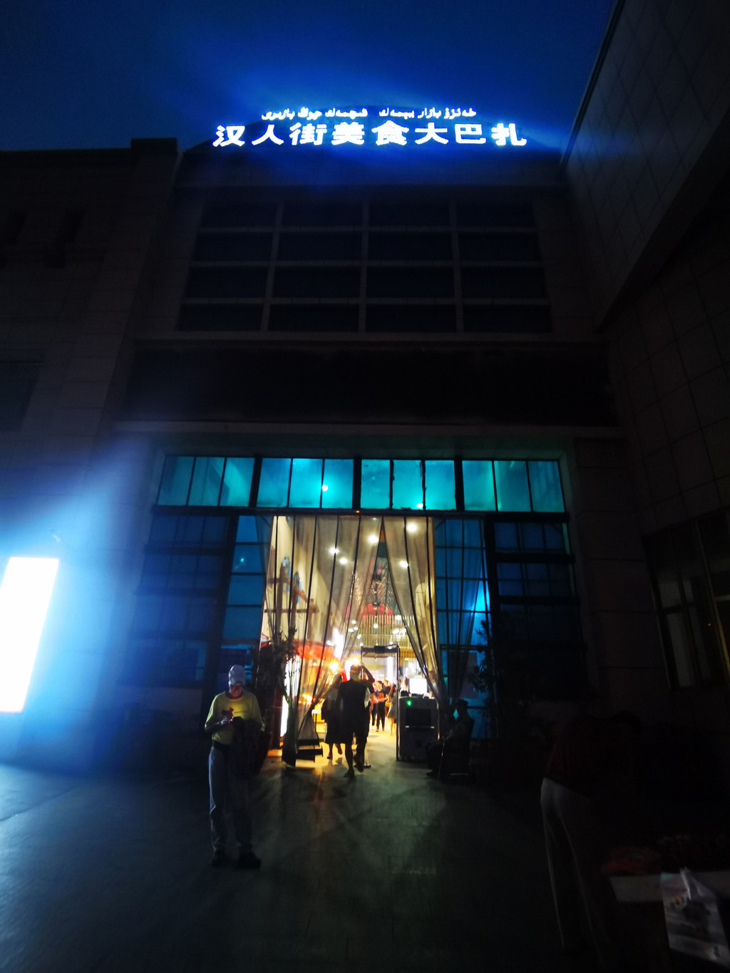 今天逛了一天,用脚感受了伊宁城市的美,着实还是有点累哈,回酒店休息充电,这一充电给充到了太阳下山啦,哈哈有点充过头了,驱车到汉人街美食大巴扎觅食,美食大巴扎内好多各种新疆美食摊位,琳琅满目,虽然游客挺多的,但这里的物价实惠,分量很足,味道谈不上惊艳,但是没有踩雷,是个吃食的选择。