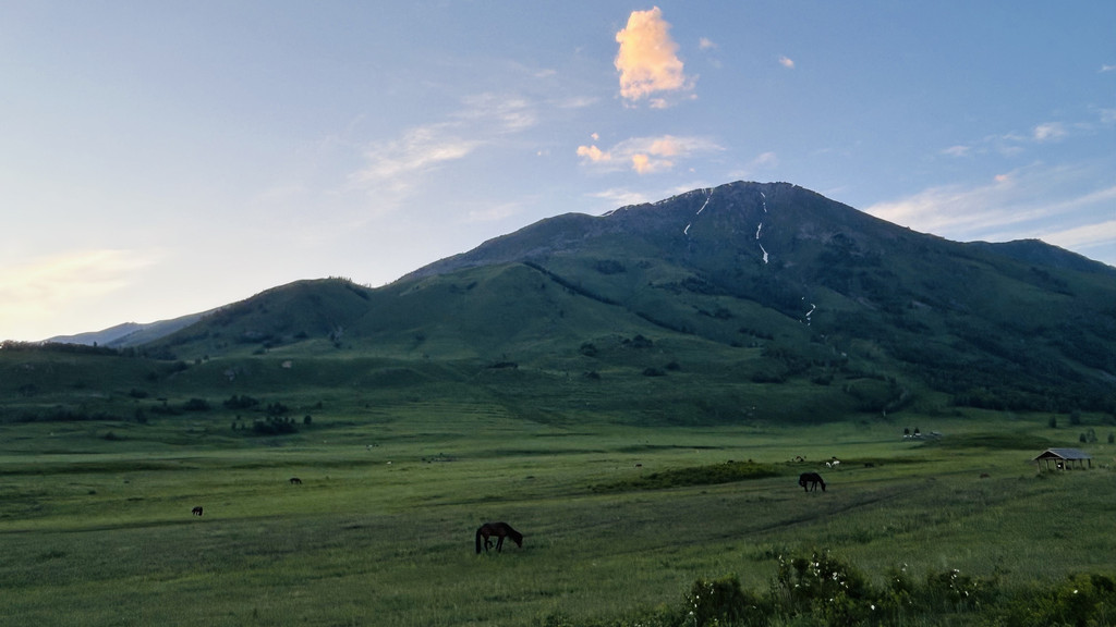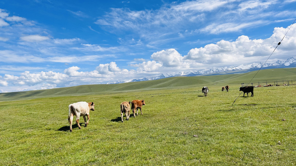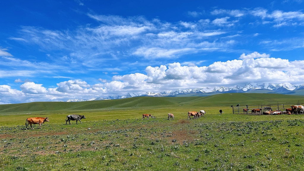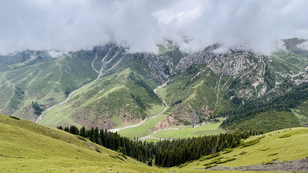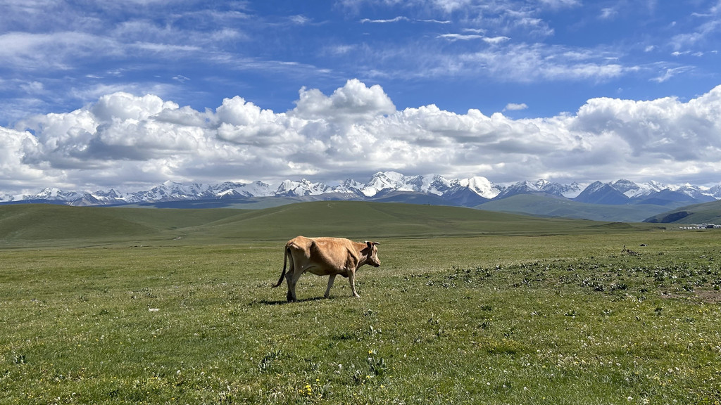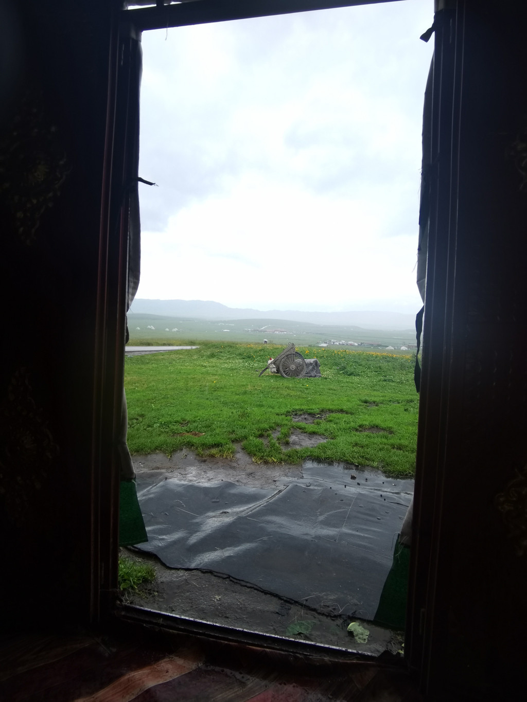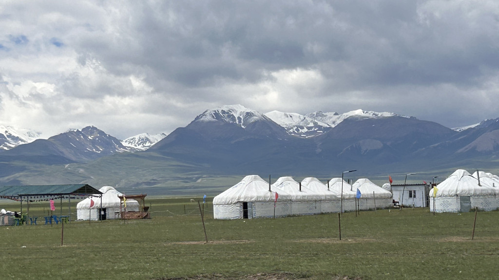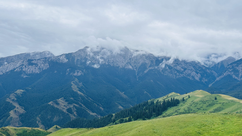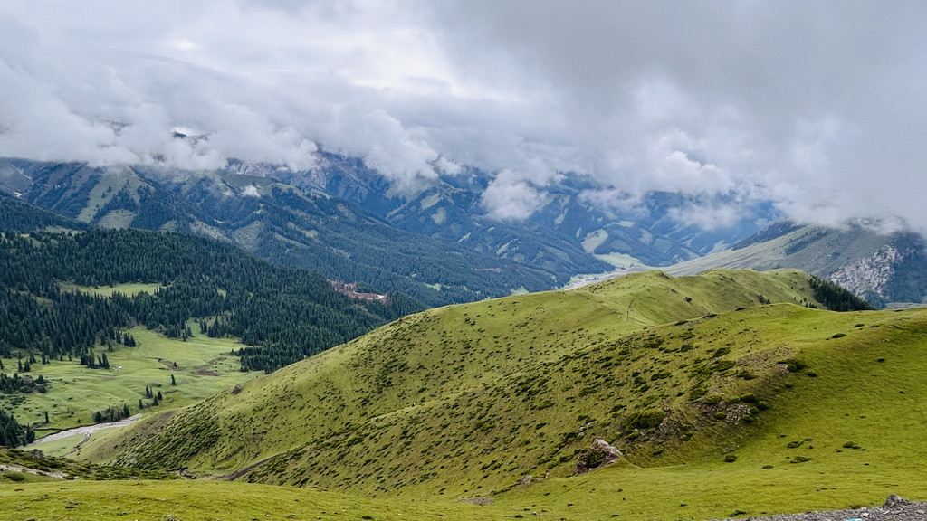 中午时分到达依据乾坤八卦图建造的八卦城特克斯,城内没有红绿灯,但通过八卦规划车辆行驶井然有序,很是神奇;办理好民宿入住后,在附近美食街的红玫餐厅解决中午饭后,驱车前往距离特克斯一小时车程的小众景点阿克塔斯草原,处于还在开发中的姑娘峰景区内,路已修好很好走,还未开始对外收费,只要在景区入口服务中心,进行车辆和身份登记后就可以驱车进入,需要环山而上,高山草原视野很好;可惜我们出发时还是晴天,一路到达草原时已经乌云密布,草原上没走一会便开始下起了雨,等候近1小时仍不见转晴,只能遗憾没能看到草原的美景,驱车下山回特克斯了。
