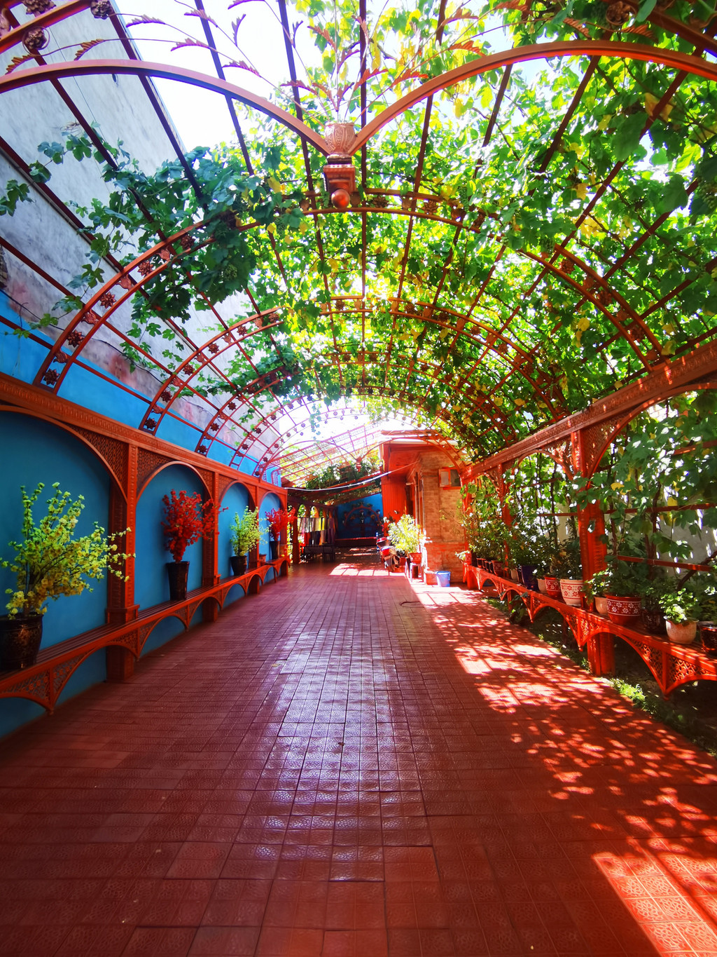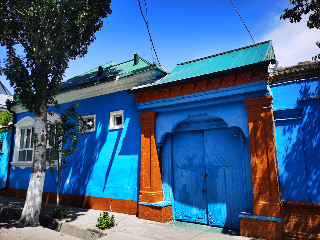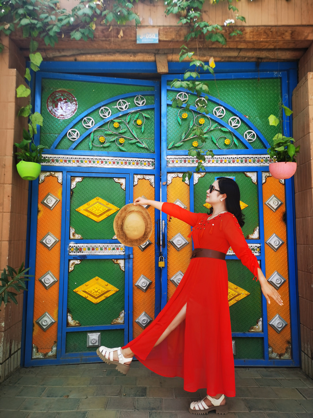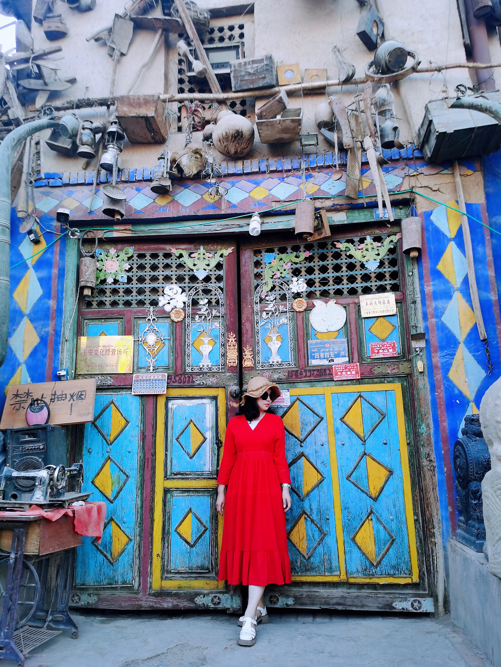 伊宁老城喀赞其,总面积约22.9平方公里,是以维吾尔族为主包含回族、哈萨克、乌兹别克族等少数民族聚居区,旅游区最大限度地保留原有的民居、民风、民情,所有民居和环境建设始终保持着百年前的传统风貌与格局,是一个以展示伊犁维吾尔民俗风情为主的原生态大型人文旅游景区;这里与六星街的不同之处是,更原生态,更能展现维族的风情。喀赞其是一个蓝色的海洋,随处可见蓝色房子,各式门窗,镶嵌在蓝色之中,非常的漂亮,置身其中宛如画中。整个区域非常大,里面生活了很多维族同胞,在不打扰并取得主人同意的情况下,可以进民居院里稍微参观,步行喀赞其是个体力活,建议乘坐三轮车或坐个马车逛逛,可以节省体力;我们步行了一段路,离开主路到各个小巷随意逛,人很少,拍了好多美照,累了路上叫了辆维族老伯的三轮车带我们逛一圈,三个人一辆车50元,大约逛了40多分钟;维族老伯很友善,我们让他帮我们带到看到的地方,让我们拍拍照,她开着三轮车很认真帮我们物色好看的维族院子,虽然可能他物色的好地方并一定全是我们中意的,但是仍然很感恩老伯一次次的带路和等候;维族老伯的普通话比较一般,沟通上一定程度有点困难,好在老伯也很聪明,每次我们听不懂他的话时,他都会寻找路过的维族年轻人帮他翻译,也挺有趣的哈。