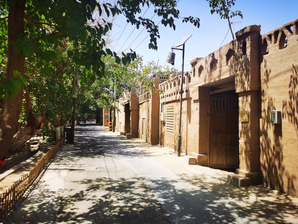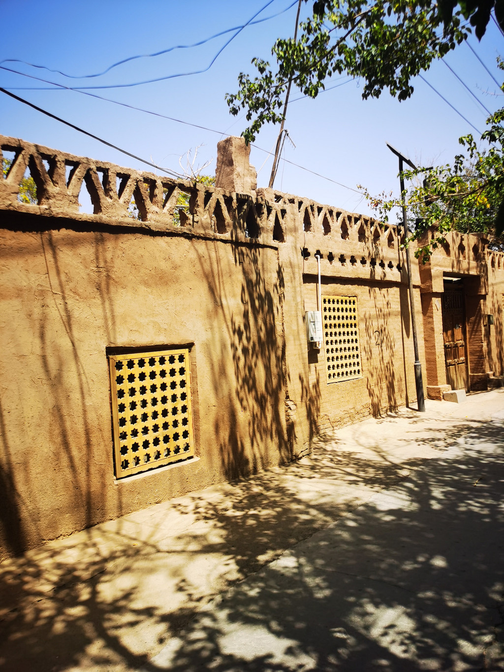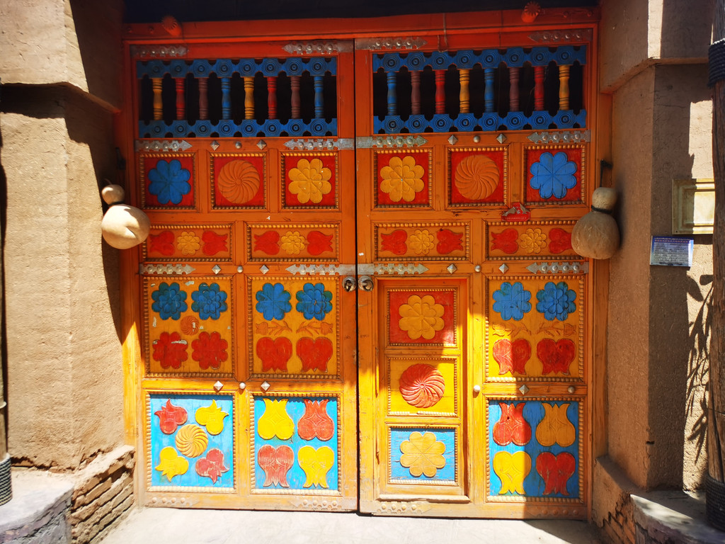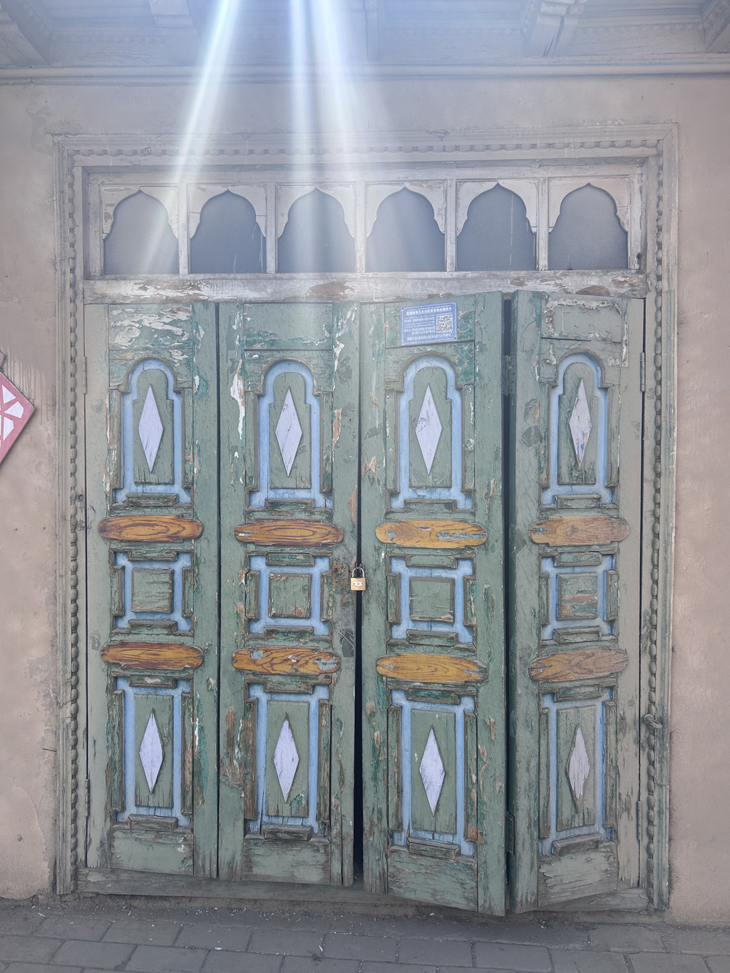 从麻扎村驱车大约40分钟可到达一个名字很有趣的村庄-三个桥村,这里吸引我们过来的不是桥,而是村里各式美丽质朴的门窗,这不是一个常规游客会到来的地方,我们算是游荡村内各家门口拍照的怪人吧,哈哈。三个桥村里百年桑树和榆树到处可见,其中最高的树龄已有600多年,这里还有古老的造纸艺术-桑皮纸及惊艳的艾德莱斯丝绸纺织,我们已被门窗虏获,加之午后好像整个村庄多在休息一样,路上没见到几个行人,很多作坊都闭门休息呢,所以未能一见。