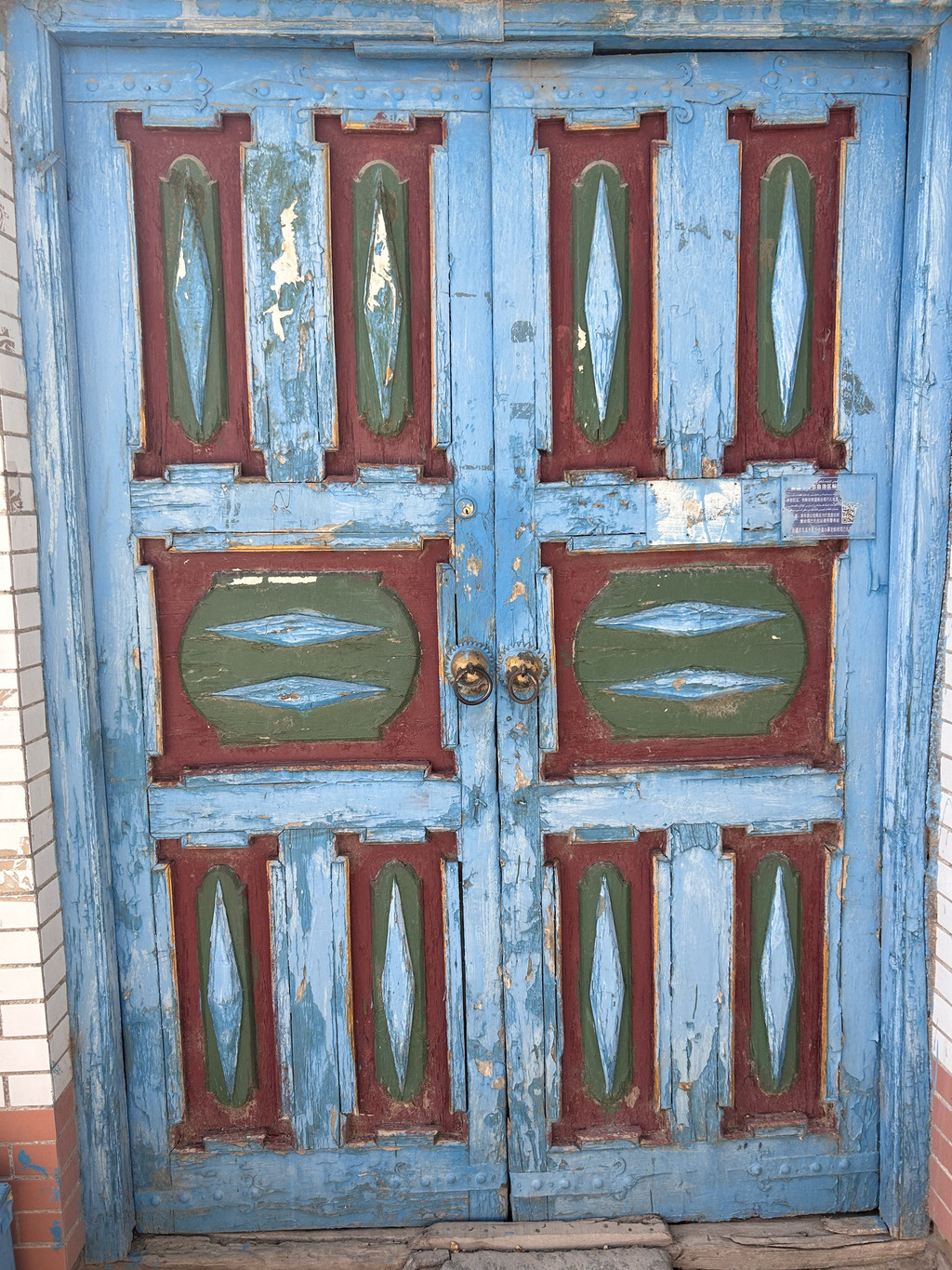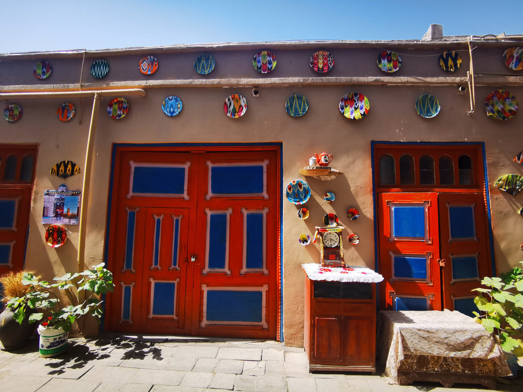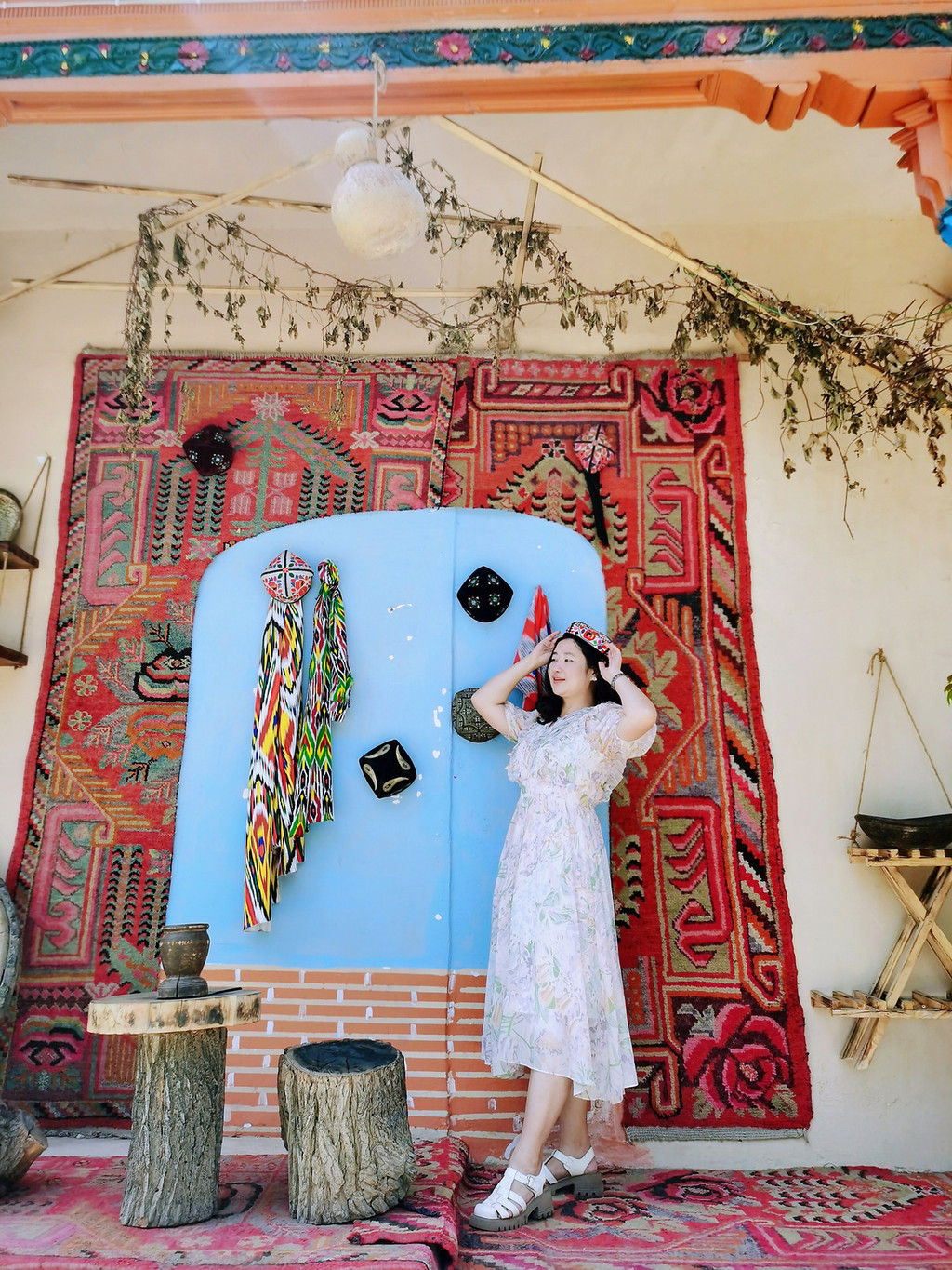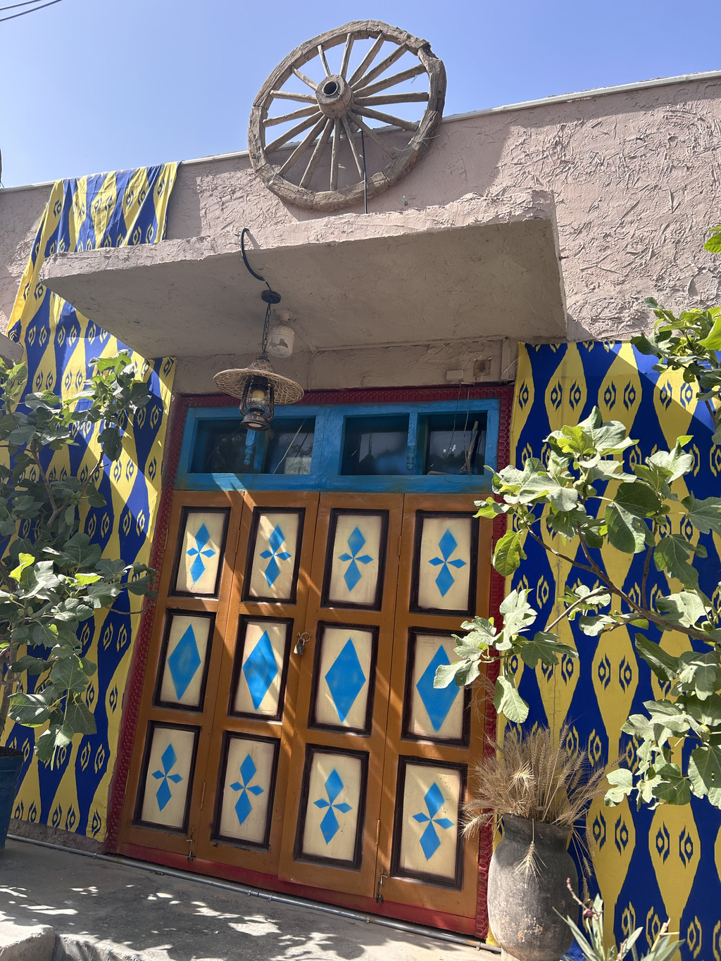 从麻扎村驱车大约40分钟可到达一个名字很有趣的村庄-三个桥村,这里吸引我们过来的不是桥,而是村里各式美丽质朴的门窗,这不是一个常规游客会到来的地方,我们算是游荡村内各家门口拍照的怪人吧,哈哈。三个桥村里百年桑树和榆树到处可见,其中最高的树龄已有600多年,这里还有古老的造纸艺术-桑皮纸及惊艳的艾德莱斯丝绸纺织,我们已被门窗虏获,加之午后好像整个村庄多在休息一样,路上没见到几个行人,很多作坊都闭门休息呢,所以未能一见。