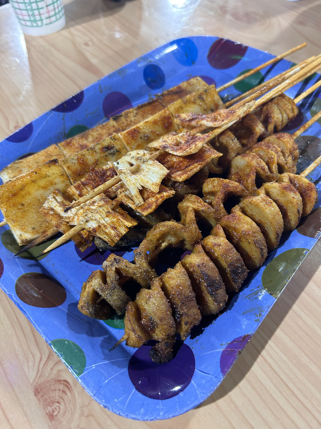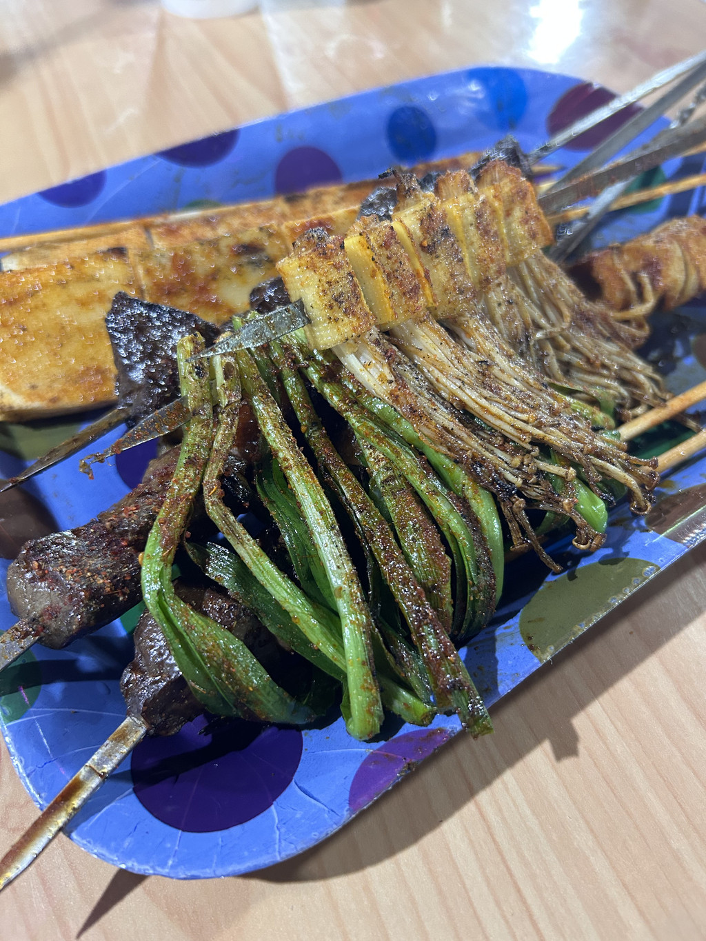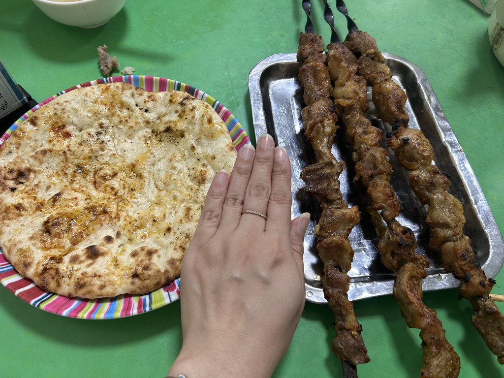 晚上前往库车当地人常逛的乌恰夜市觅食,这里各色新疆美食,琳琅满目,香气四溢,很有烟火气,吾麦尔烤鸡腿、新疆麻辣串串、现烤鹅蛋、新疆麻辣披萨、库麦其馕、烤包子、炖羊心、肚包肉等等,总花费不到100元,价格实惠,强烈推荐。