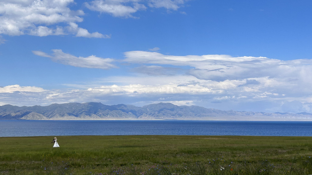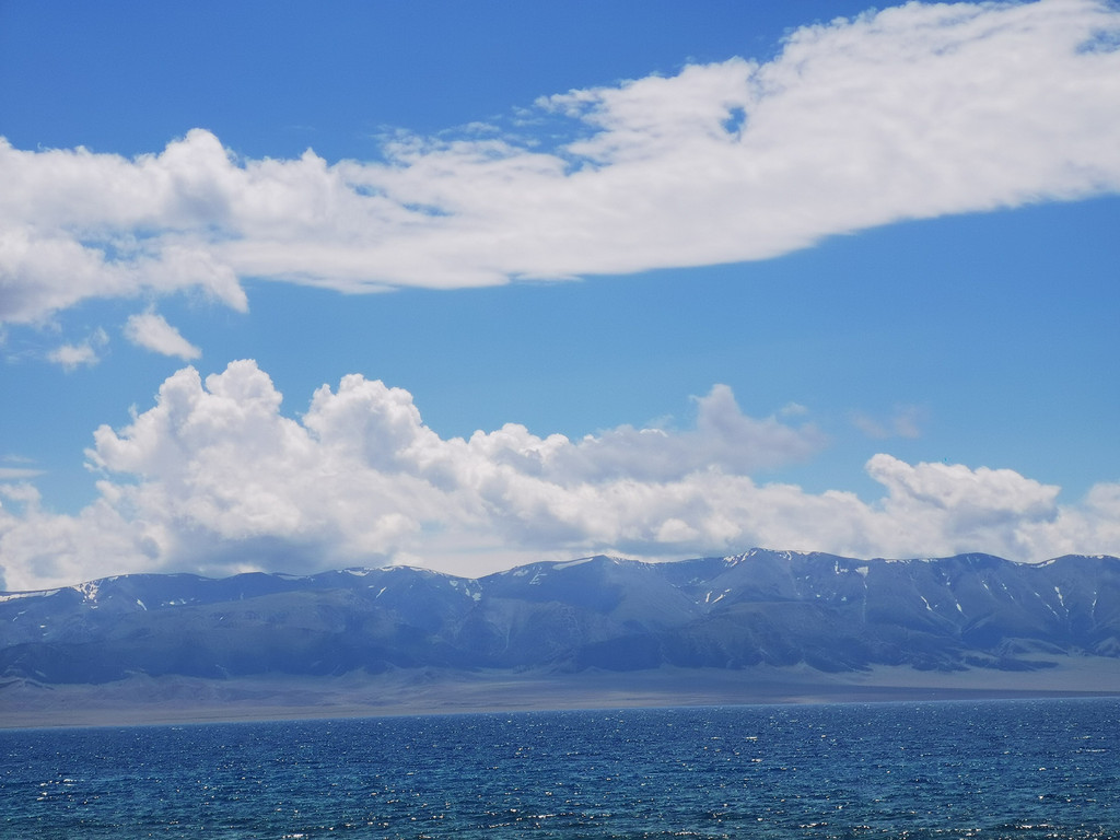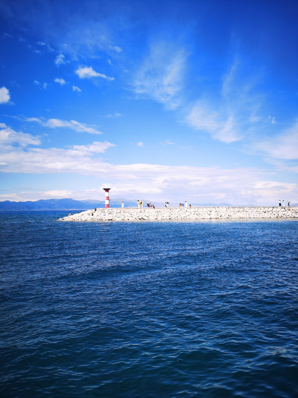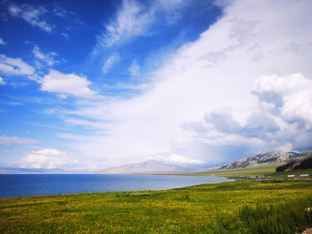 由于背靠雪山,赛里木湖湖边又是广阔的草原,清澈蔚蓝湖水像镜子一样,映照出蔚蓝的天空和如画的山峦。每年的六七月份,是湖边的草原上野花盛开的季节,这是赛里木湖游玩的黄金时节。今天刚刚到达赛里木湖时天还很不错,驻足灵虾湾与十里长堤时还晴空万里,湖远看很蓝,近看水很清澈,非常漂亮。不料这天气说变就变,从高白鲑餐厅吃完午餐出来,远处已经开始有大片乌云缓缓到来,风逐渐变大,估计是场不小的雨,当我们经过亲水滩观看湖里天鹅时,太阳已被遮盖了,湖水浪大,天鹅在浪中摇曳,但仍没有打散游客们驻足欣赏的心。