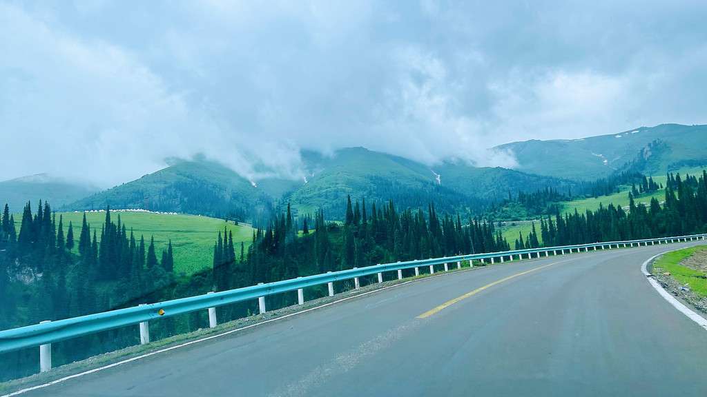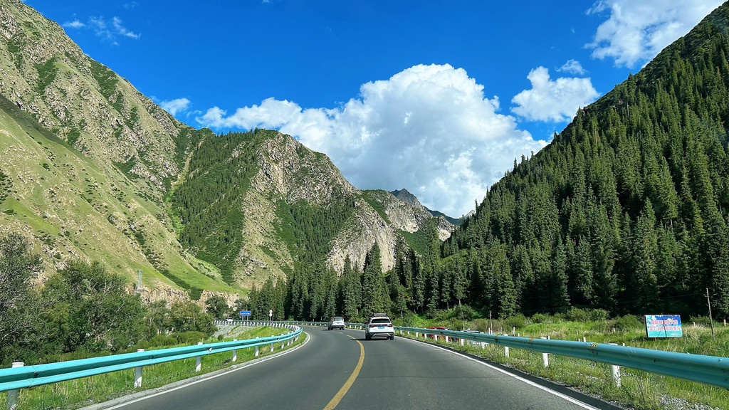 今天将伊宁出发走有小独库之称的“伊昭公路”,可以直达昭苏县的夏塔草原,不过一来我们被夏塔景区的排队给劝退,二来没预定到夏塔草原内唯一的一家酒店-温泉酒店,考虑再三放弃夏塔,到达昭苏境内后拐道到八卦城特克斯;伊昭公路全长180公里,北起伊犁哈萨克自治州昭苏县的夏塔牧场,南至阿克苏地区温宿县破城子的夏特古道,沟通天山南北,风景如画处处充满生机、活力。伊昭公路是古丝绸之路“弓月道”的其中一段,沿途要翻越乌孙山上的安格列特达坂(海拔3000米),道路险峻,弯多路陡,两侧悬崖深涧,一路风景秀美,仿佛穿行在白云之上。伊昭公路每年通车大概有4个月,一般是6-10月,伊昭公路允许五座小型非营运车辆通行,禁止7座(不含7座)以上各类车辆、5座(含5座)以上营运车辆、大型货车、半挂牵引车、全挂车、大中型工程机械等车辆通行。每天的22时至次日9时,禁止任何车辆在此时间段通行。