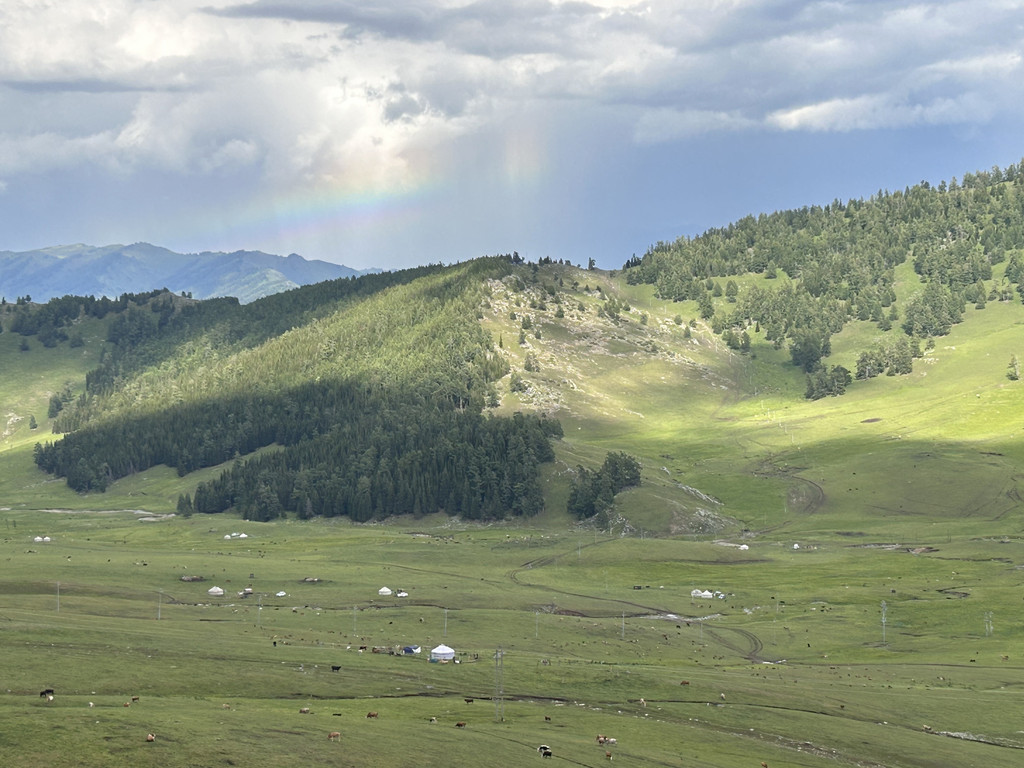 新疆的夏季,尤其是北疆降雨还是挺丰富了,尤其是高山草原地区,天气多变,前一刻是艳阳天,可能下一秒就风云变幻,下起大雨来,所以雨具还是得备好。