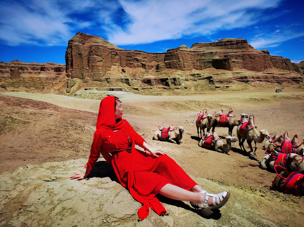 第二站,有狮身人面像,还有骑骆驼,但我觉得骑骆驼旁的几个观景点,是拍照的好地方,视野辽阔,搭配雅丹地貌,拍照很出片,在这里我们狂拍不知道多少张。