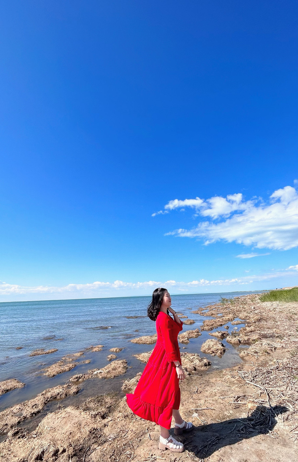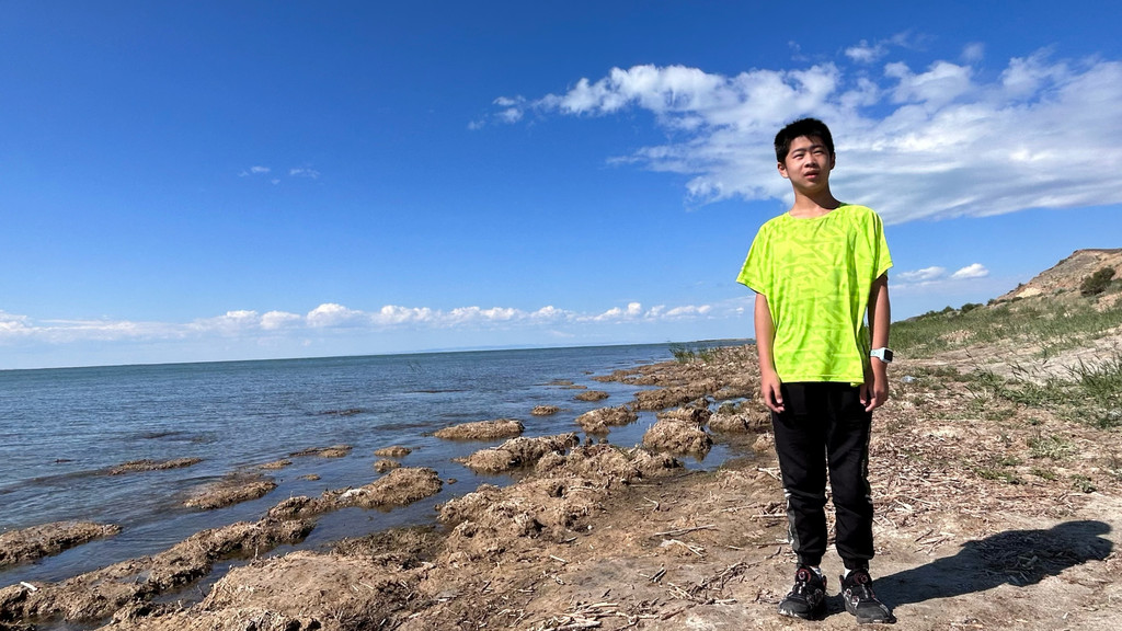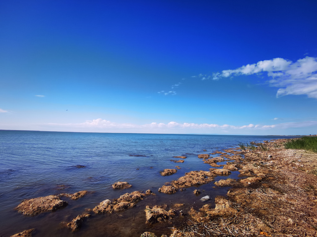 昨天飞机+长途开车,今天行程相对较短,首先将经过乌伦古湖,位于准噶尔盆地北部,我们没有选择进入沿湖的风景区,而是在前往北屯前往布尔津途中拐入海滨渔村民宿区附近道路,沿路的湖景很美,还可以下到湖边戏水,重点是没有什么游客,静享一片水域。