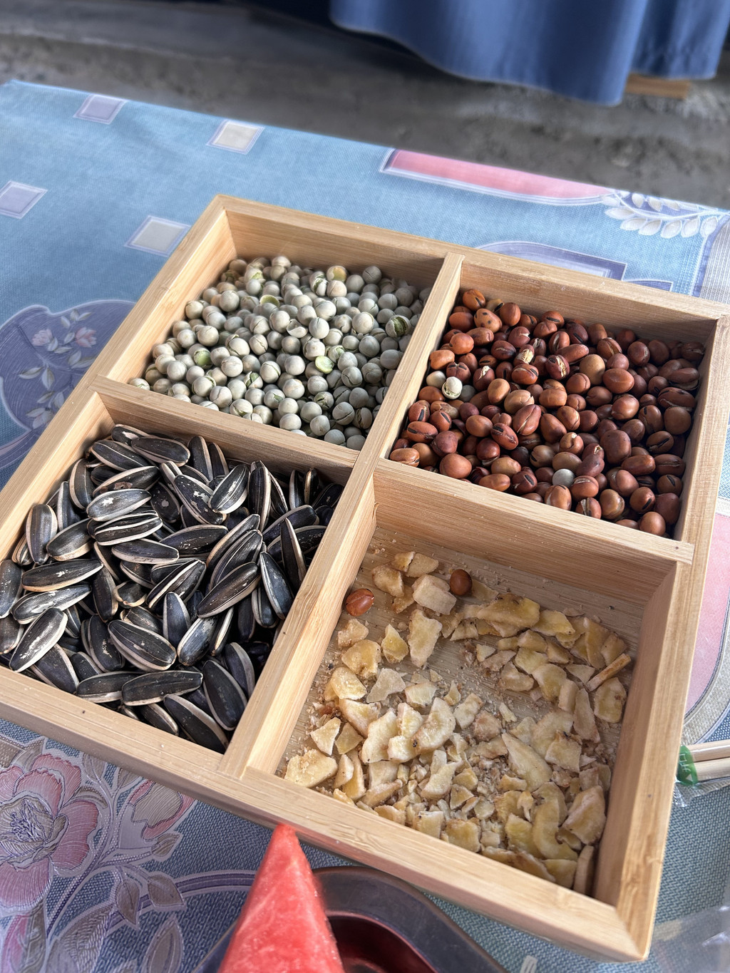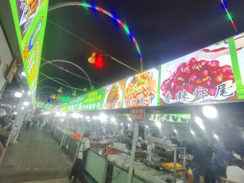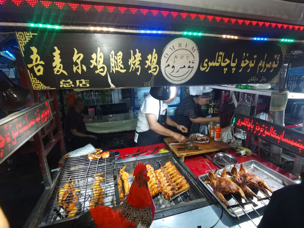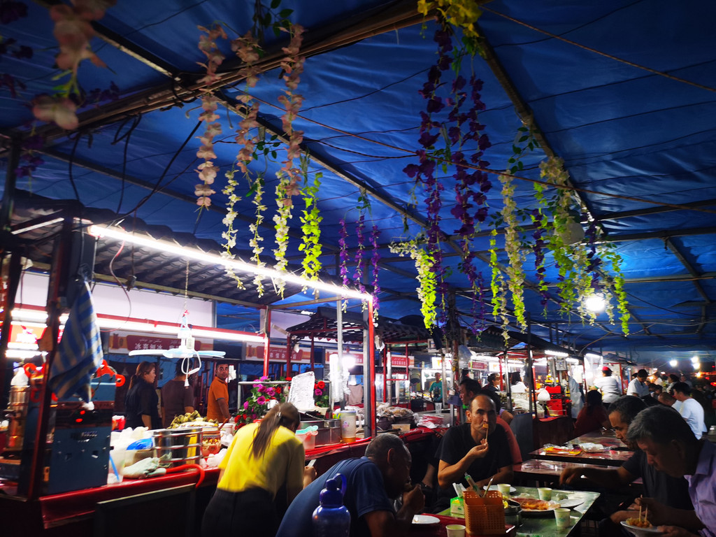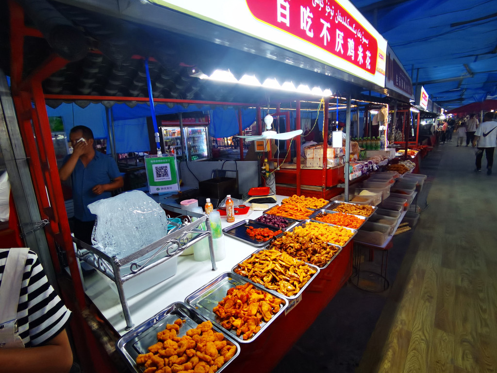 前往吐鲁番蔬菜瓜果交易市场,本来是要到市场里购买些干果伴手礼的,结果没想到市场关得早,无意中发现市场外的一家干果店,新店开张,优惠大酬宾,价格普遍比其他店便宜,而且试过味道真心不错,还免费包邮,那怎么能错过呢,买起;这里偷偷的提个醒,乌鲁木齐的红山干果市场很出名吗,很多人会再这里购买干果,其实他们的干果多数从吐鲁番进货,故价格多比吐鲁番贵,有来吐鲁番的就直接再吐鲁番购买吧。晚上前往吐鲁番的福爱夜市,夜市虽然规模不算很大,但是吃的很多,有点类似南方的大排档的感觉,选择了福爱夜市最出名的老八号餐厅,也是夜市里客人最多的餐厅,这里餐厅的分量都挺大的,注意了别点多了,很容易撑着了。