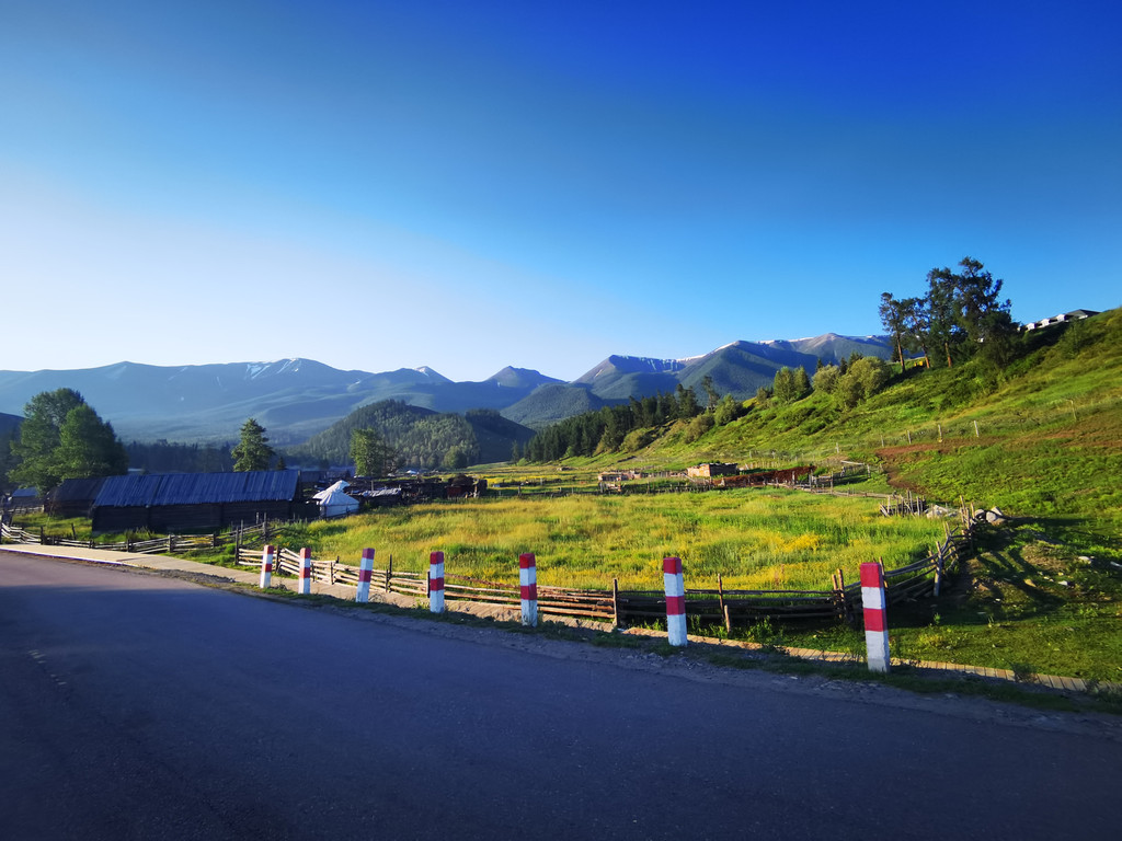 今日早起看西北第一村日出,早晨的白哈巴村还是挺冷的,注意保暖;观日出的地方在老村白哈巴地标大石头旁,可惜今日晨雾没有起来,一直看到部分雾气在哈萨克境内远处的山间,没有到达白哈巴。吃完早饭,退房,选择步行逛逛村落,往区间车站点走去,回喀纳斯,如果对国境线感兴趣的人,喀纳斯已游玩完了,可以选择包车或自驾中哈边境公路,一路欣赏边境风光,前往哈巴河县,不走回头路。