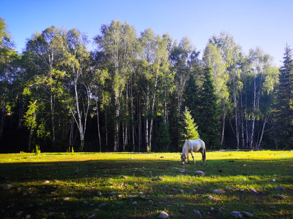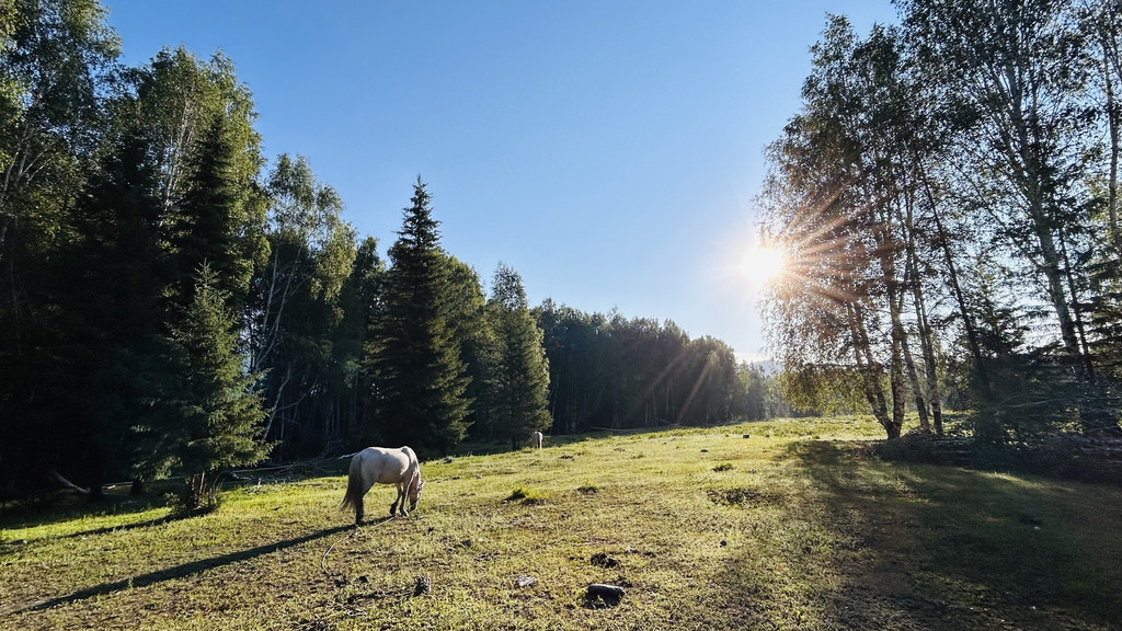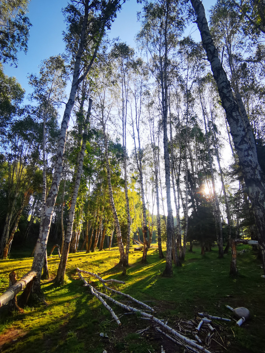 睡个自然醒,打开小木屋的门,清晨的阳光带着凉意洒进来,没有观日出晨雾,那就看看清晨的白桦林吧。8点左右的禾木村,道路上人少,看日出的人应该回屋睡回笼觉了,新一批进入禾木的大军还未到来,这个时间点禾木显得特别禾木。禾木河旁的白桦林,清晨的阳光洒落,显得格外的美丽,随便就能拍出一张张美照,这样的才是我心中净土禾木应该有的场景,简单、安静、不染、自然。