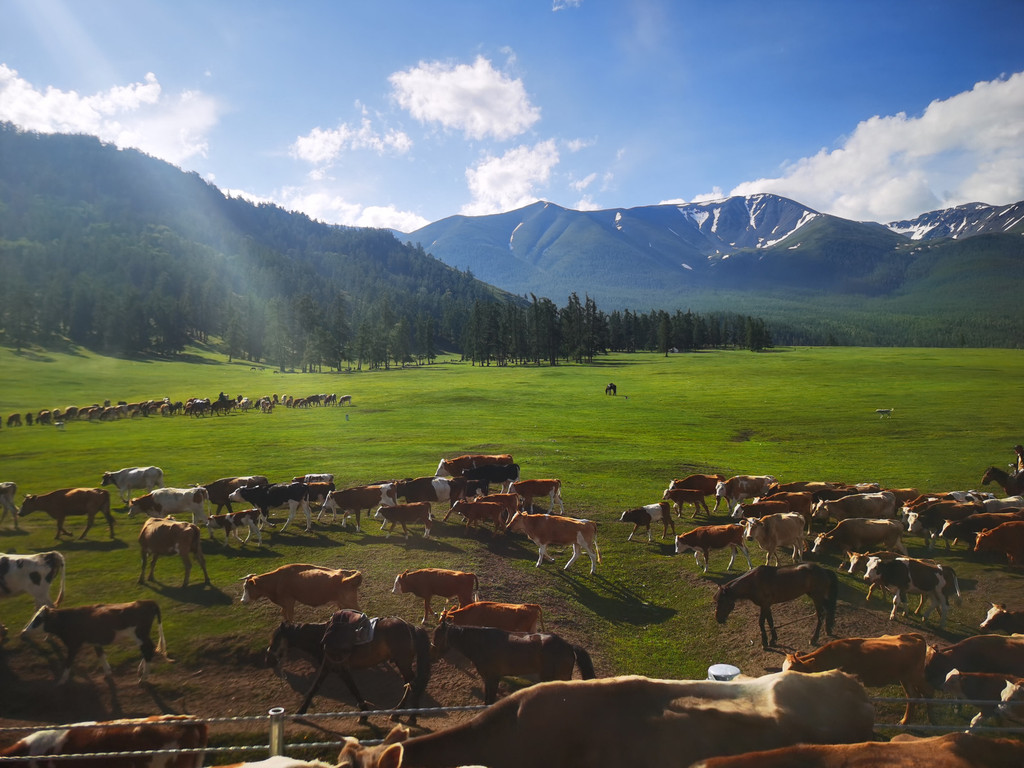 5)第5天(2023.7.4,周二)清晨白桦林赏景,禾木区间车及村内公交车大约1.5小时出禾木村,自驾至喀纳斯贾登峪门票站,车程约70公里,喀纳斯区间车大约1.5小时到达喀纳斯换乘中心,办理边防证,观鱼台观喀纳斯湖全景,喀纳斯换乘中心区间车约1.5小时至白哈巴村,白哈巴村游逛,晚餐哈巴河木屋客栈餐厅,宿哈巴河木屋客栈(三人间);