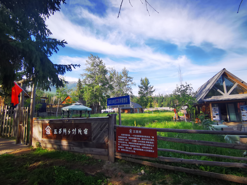 民宿房间空间大,设备齐全,干净整洁,尤其卫生间,是我没想到的干净和舒适,每个房间门口廊下都摆了小桌子和舒服的椅子,供客人们小憩,院子里的花草很美,另外有几只小猫,很可爱,祺哥和祺妈都很喜欢;老板很热情,赠送我们好吃的西瓜,还有干果;民宿离禾木桥近,步行2分钟即可到达,但是所处区域却没有如禾木桥主干道的吵闹,很幽静,超级喜欢。