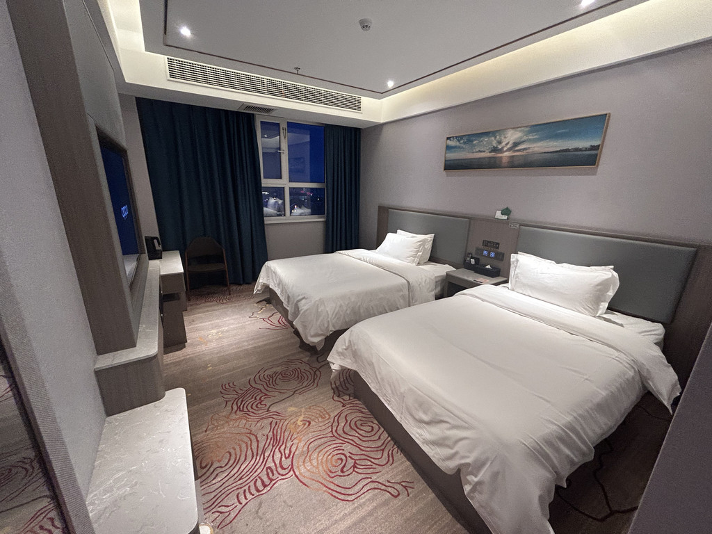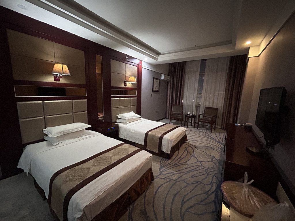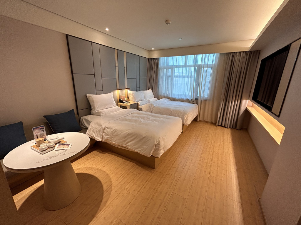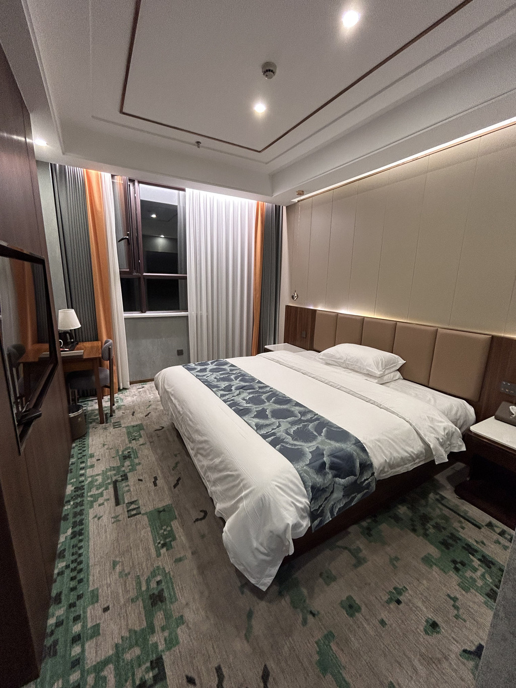 酒店房间空间很大,设备齐全,楼下停车场很大;不过我们在这里遇到相对不愉快的事,入住时,酒店前台给我们从豪华双床房升级为商务双床房,我们放好行李就外出了,回来开启空调后,发现房间异味越来越大,反馈给酒店前台,只让服务员拿芳香剂要来喷,被我们拒绝了,酒店一直以没有房间为由推脱,后在我们强烈抗议下,终于给我们换回了豪华双床房,我们还真无法理解明明有房为什么说没有,而且从服务员言语中,那间商务双床房的异味是之前就存在,酒店自己是知道的,那为啥给我们升级,这是有意还是无意的,总之酒店设施是不错,但是这样的服务方式,不能认同。