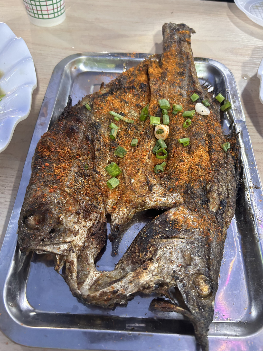 大约17时多离开喀纳斯,驱车2.5小时至布尔津县,依然还是入住布尔津勿忘我精品民宿,晚餐选择至布尔津县城另一个美食街区-四季美食广场,这里集合了很多餐厅、水果摊、干果摊等,不同于老码头夜市以烧烤为主,这里汇聚烧烤、新疆菜、冷水鱼等等综合餐馆,选择性较多。祺妈选中了一家名为买西来甫冷水鱼大盘鸡的餐厅,真心不错,好吃又实惠,冷水狗鱼两吃爆炒清蒸、西红柿炒蛋、油麦菜还有羊肉串,总花费177元。