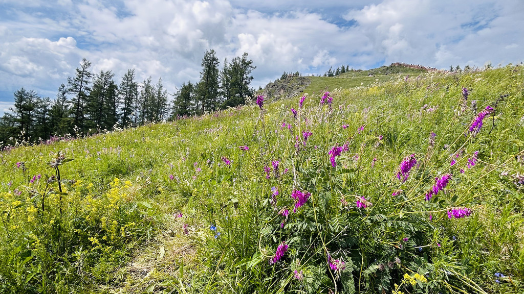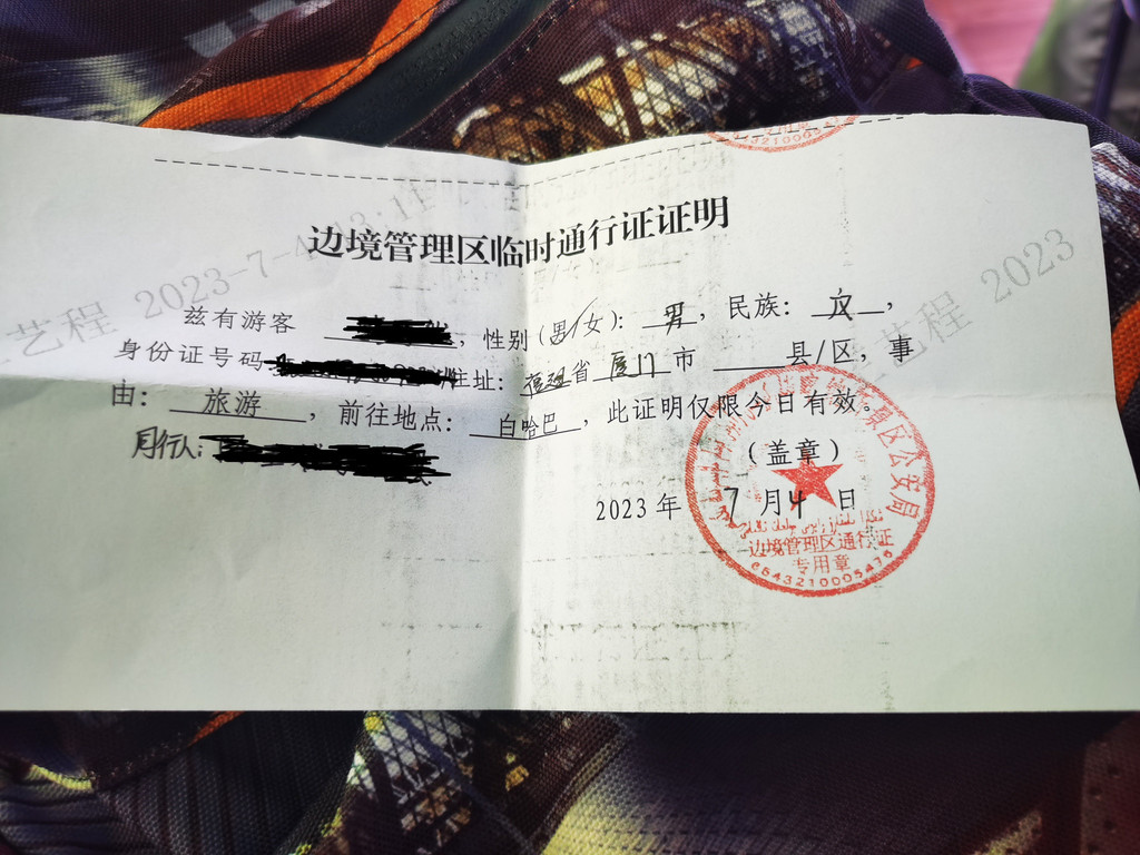 到达喀纳斯景区换乘中心大约13点半左右,在换乘中心旁的便民警务站办理边防证,以便下午前往白哈巴村,提供身份证即可免费办理,手续简单快捷,我们到达时没人,几分钟搞定,给予办理的是简易临时通行证明。换乘中心简单吃了午餐,乘坐景区区间车至观鱼台停车区,车程大约20来分钟,途中有段录会行驶在一个大山坡上,山坡上开满了各色野花,区间车多个S行驶在花海中,很好看。