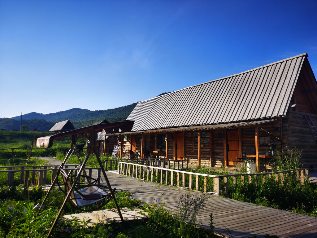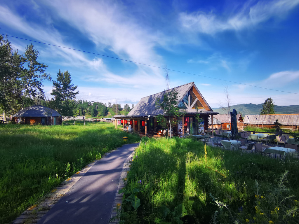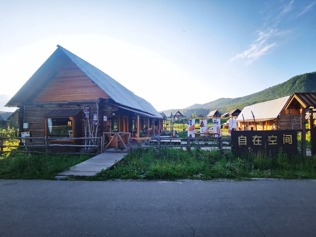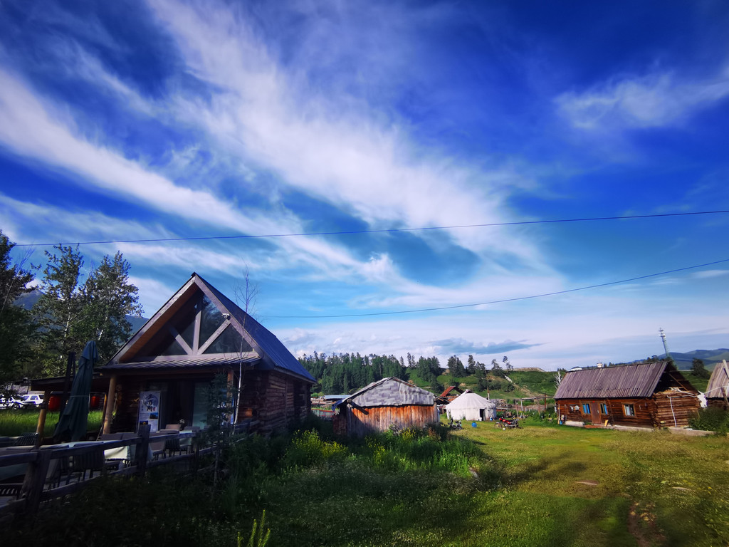 印象中的禾木村是个静怡的小村庄,不过今年暑期新疆游大热,禾木也是大家的一个必达的目的地之一,故进入村庄后发现游客还是挺多的,据说以前的禾木多为散客,现在团客也占了很多,不过还好的是禾木一般留宿的多为散客,傍晚和清晨人相对少很多。我们选的民宿位于禾木桥往东方向,相对远离禾木村主干道和餐饮区,没有人来人往的吵闹,人烟稀少,能体验一番小村的静美,午后在民宿小木屋前安静的看看书,喝喝茶,很是不错。