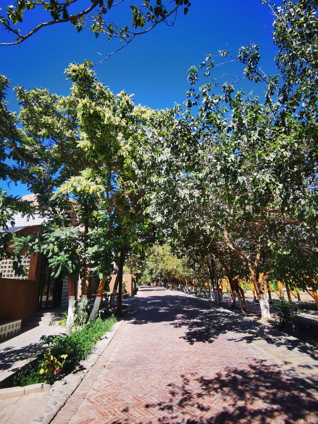 早上驱车经过库车河的团结桥,这是库车老城和新城分界,过桥即到达热斯坦路,车辆可以停留在热斯坦路与帕哈塔克扎路交叉处不远的一处免费地面停车场,帕哈塔克扎路往前走5分钟路就可以到达库车大寺,库车大寺是新疆境内仅次于喀什艾提尕尔清真寺的第二大寺,在库车老城区众多生土建筑中,库车大寺绿色的琉璃穹顶在阳光下显得格外夺目。库车大寺游玩完后,回热斯坦路,热斯坦路是维吾尔族人生活区。这条路的两边,都是当地维吾尔族人的住所和店铺。每家店铺带有浓厚维吾尔族特点的门,都极具特色。没有一家门的造型、色彩和设计是相同的,令人惊艳。热斯坦路的尽头是库车王府,王府内还居住着末代王妃,由于对王府兴趣不高,故没有进入,王府附近也有停车场,但是不知道是否免费,自驾过来热斯坦路还是很方便的,