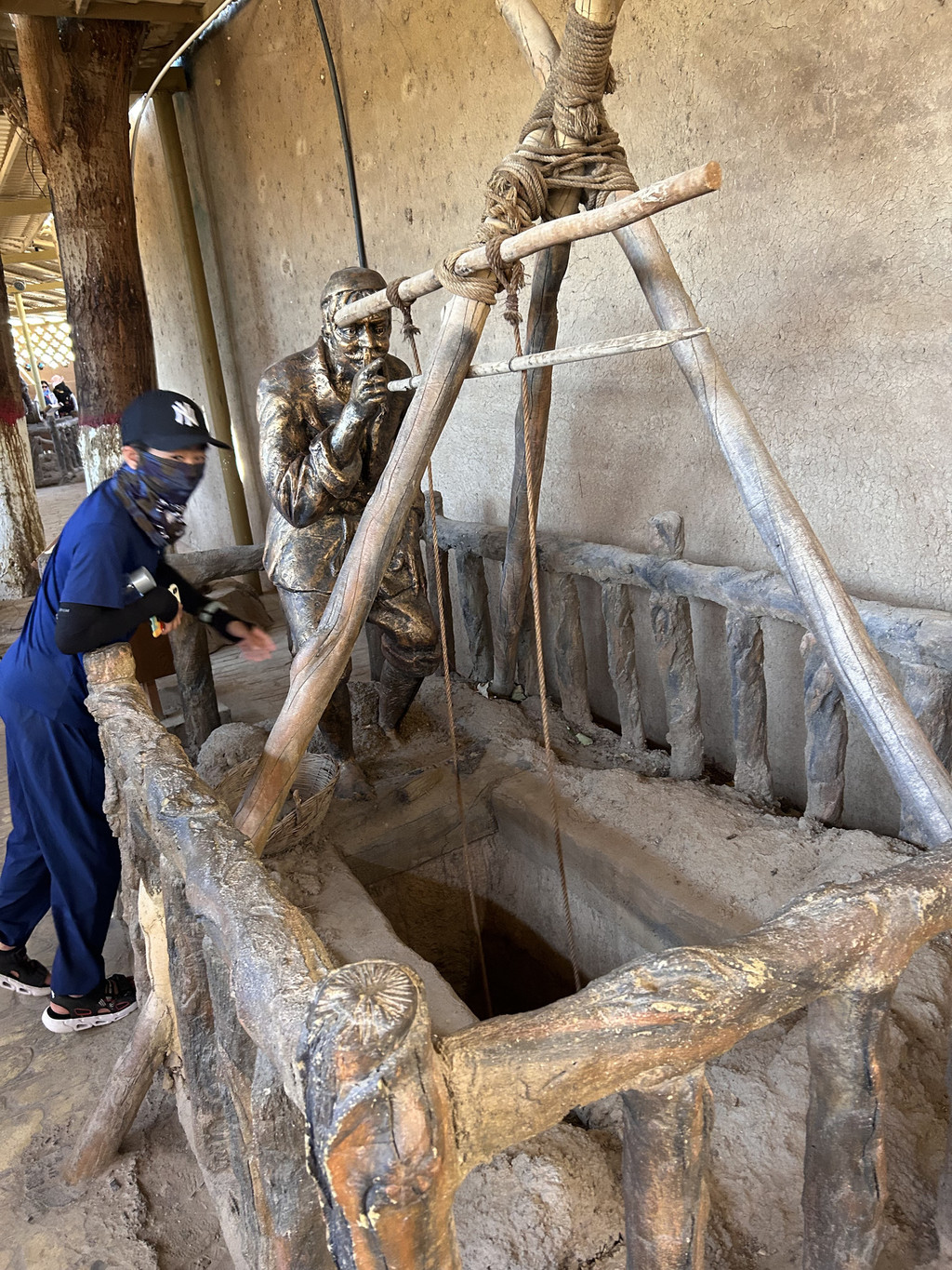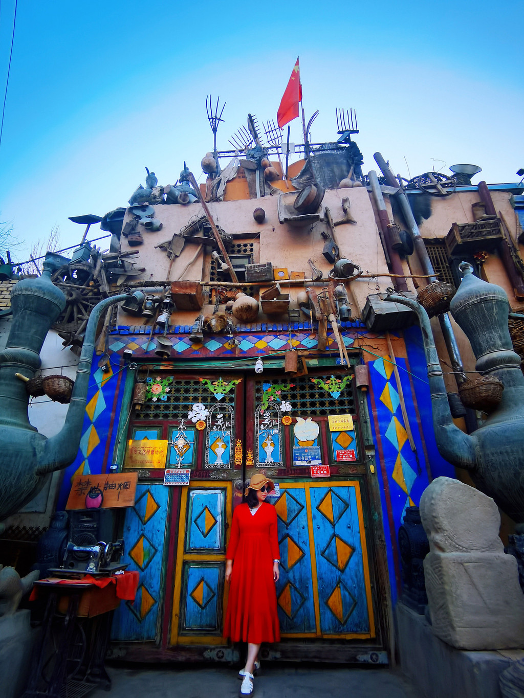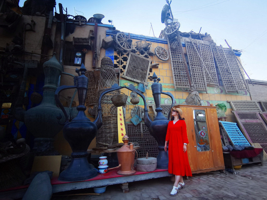 坎儿井乐园不大,慢慢悠悠的逛也就1个小时左右便能走完,主要还是可以了解坎儿井的历史,感受坎儿井暗渠的清凉避暑,还能让祺哥好好感受课本里读到的坎儿井。午后火州吐鲁番是越来越热,炙烤的感觉,已经有40多度了,赶紧到民宿休息躲一躲,晚点再出来晃悠。等到20时多,温度总算了下来了,太阳已将西落,乘还未日落先到即将被拆除的网红爷爷的古董店打卡下,这是一家非常独特的店铺,古董应该谈不上,多是一些老物件,大家多是被房子奇妙的外观所吸引,周边的房子已拆得差不多,已在开始建设,这家店应该也快拆了,着实有点可惜。