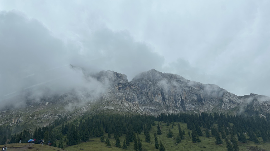回喀纳斯途中,路遇好几群牛羊群的牧场转场,我们被温柔的多“挽留”了半个来小时,到达喀纳斯换乘中心大约11时左右,从换乘中心乘坐区间车前往喀纳斯湖;今天天气不佳阴有小雨,从湖边栈道走到游船渡口后便回返了,阴雨天的喀纳斯湖景色不佳,只能算是来打卡了。