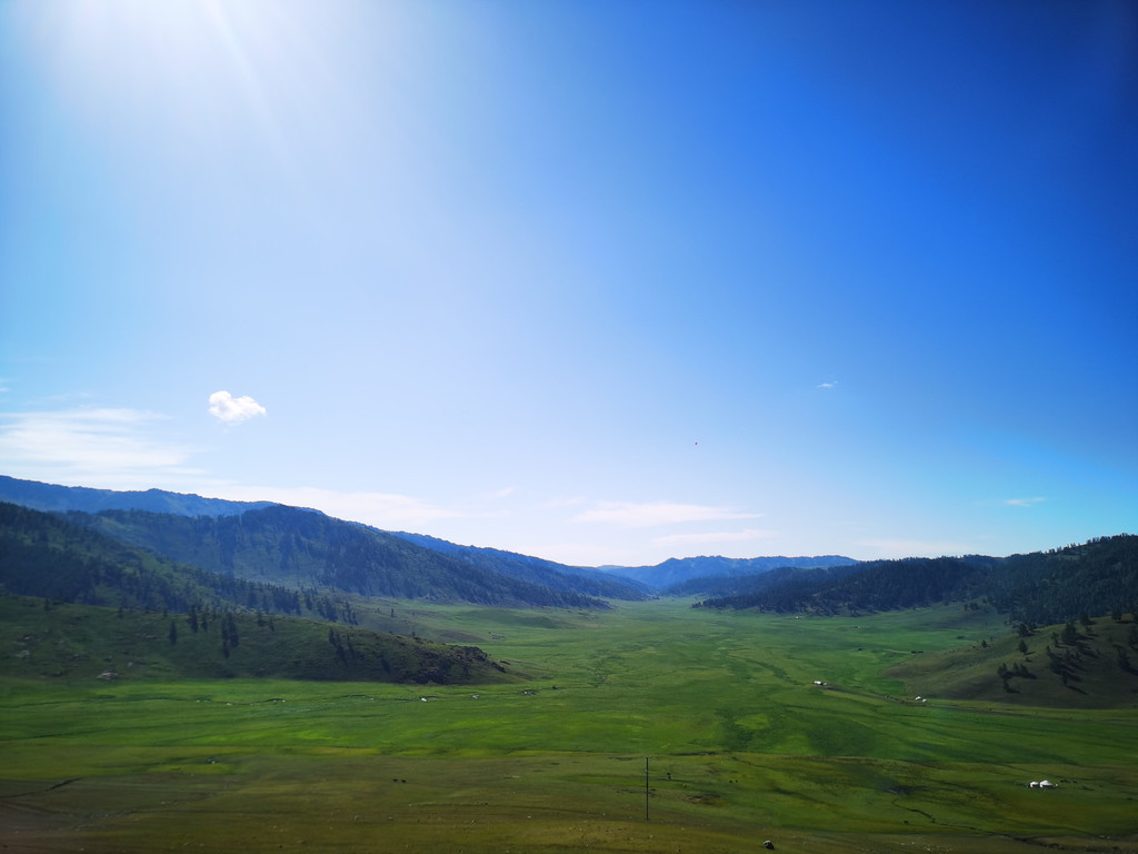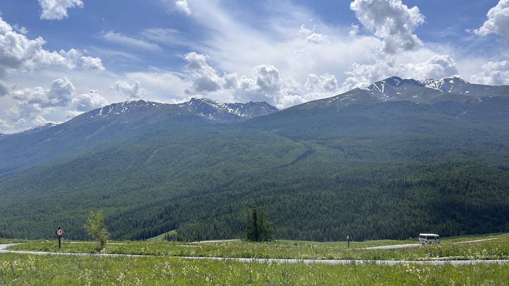 前往喀纳斯换乘中心至白哈巴村区间车,车程大约需要一个半小时,沿途会经过检查站,检查喀纳斯门票以及边防证,如果是换乘中心办理的临时通行证明边防证,在检查站将由检查人员核查后收回;途径也根得空中草原时,区间车司机大哥很好心的停靠了车辆,让大家下车休息拍照欣赏美景,这是一个很不错的空中草原,人少景美,确实值得停留下来,感谢司机大哥。