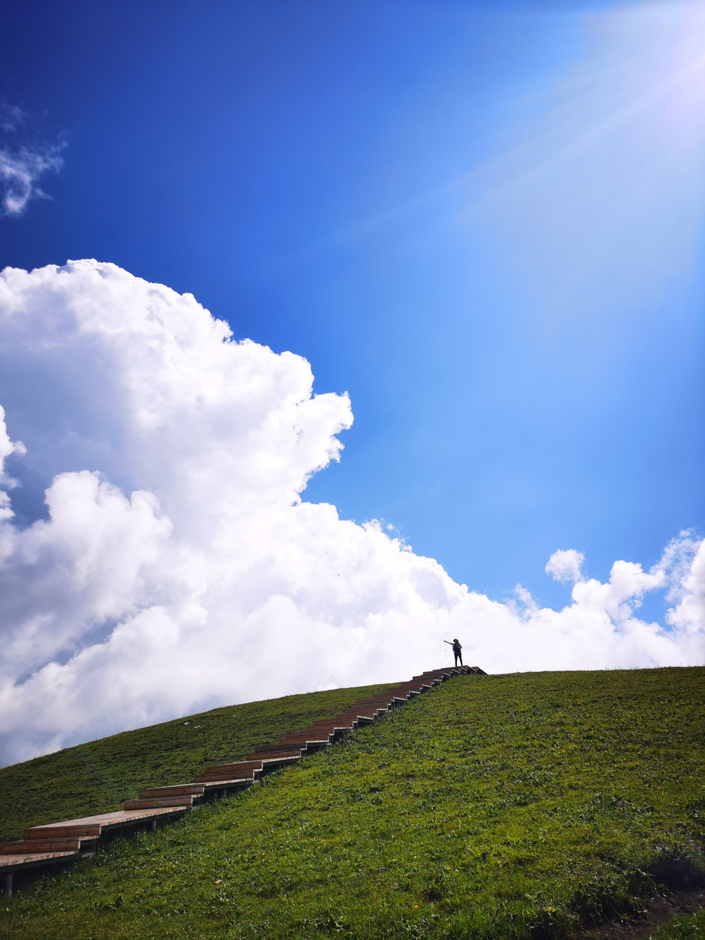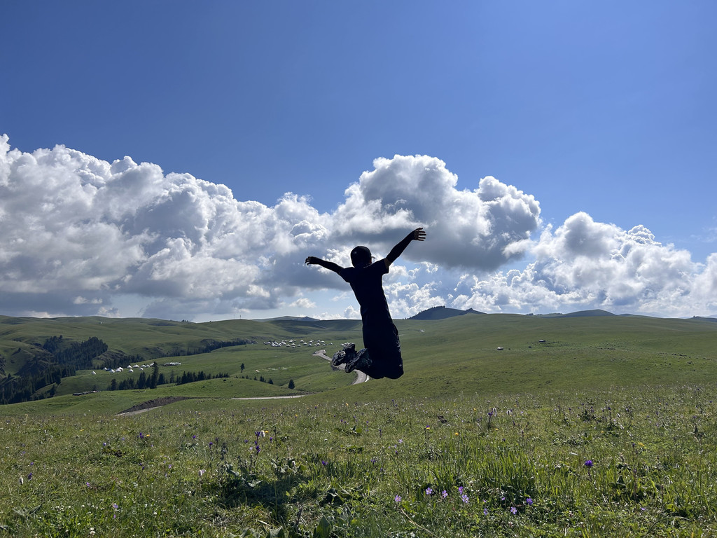 想要看到最美的草原,需要有一个好天气,而新疆的草原天气多变,本来计划去的库尔德宁,但是查看了天气,一整天都是大阴天,过去一趟路途遥远,目前的特克斯是个大晴天,遂临时决定放弃库尔德宁,乘着大晴天再游,果然,晴天下的阿克塔斯是另一种风景,非常漂亮,我们来得早,人很少,人少景美,自由游玩,随意拍照,没人打扰,很开心。