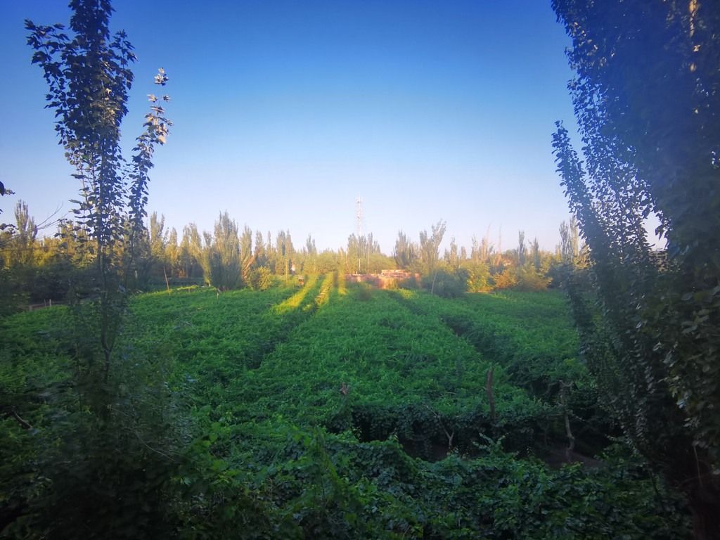 高温过后,傍晚的青蛙巷没有游客,只有当地的居民,行走其中两旁的桑树还有维族人家院子的一大片葡萄,悠然自得,青蛙巷里也有很多好看的门窗,门窗收割者的我们再次手起刀落,拍拍拍。