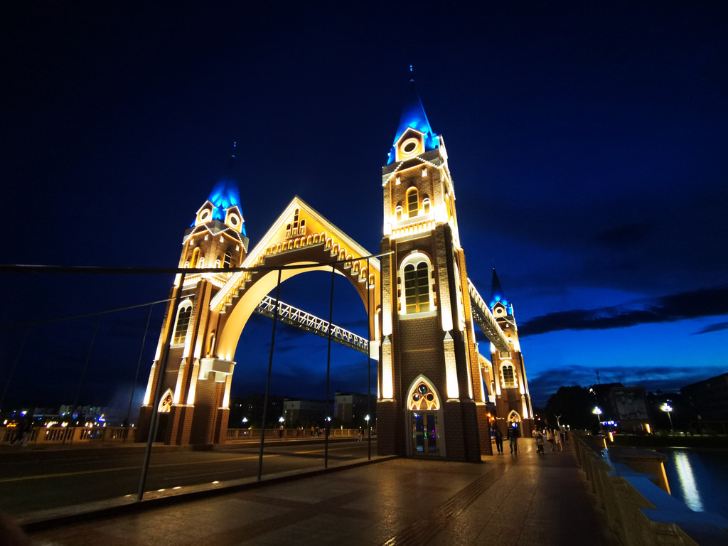 从四季美食广场发现天边有晚霞,驱车至布尔津河,俄罗斯风情街附近公路桥是欣赏晚霞的最佳之处,布尔津河、老码头、晚霞,景色很美。夜色降临前往布尔津县城的名片布尔津河网红桥,童话边城布尔津的标志,夜间的网红桥非常美,夜间桥梁区域将禁止机动车通行,供游客观赏拍照,很方便。