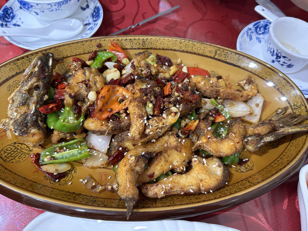 再出发,往乌鲁木齐方向1个小时车程,将经过一个以辣子鸡闻名的柴窝堡辣子鸡一条街,整条路上两边遍布了几十家辣子鸡餐厅,从中选择了一家名为金玉兰总店的餐厅,辣子鸡味道还不错,不能算惊艳,一顿午饭还可以。