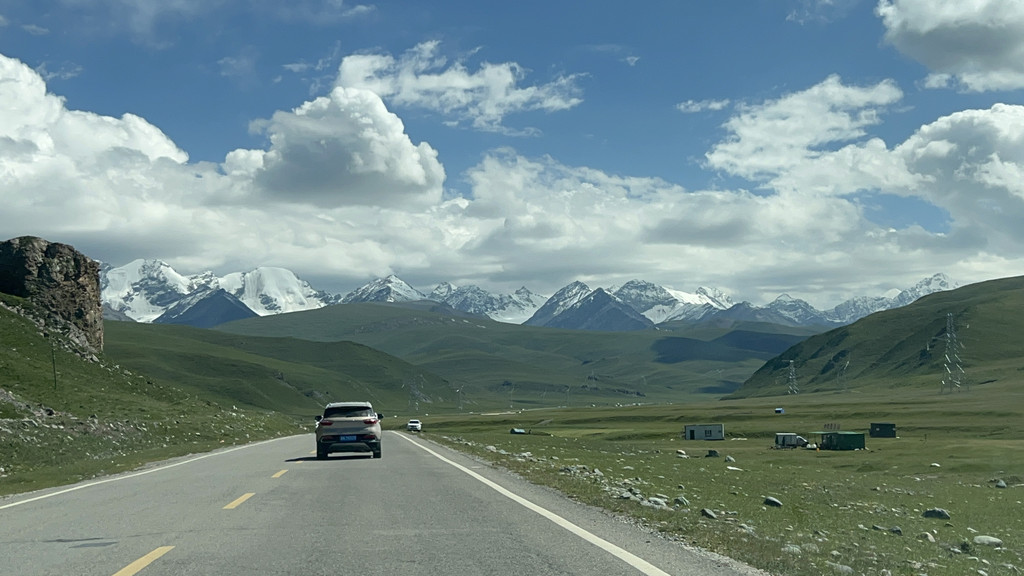 由于独库公路的大火,很多人自驾前往,极易出现堵车情况,独库公路也因此被戏称为“堵哭公路”,为了防范被堵在公路上,我们车上备了足够的食品和水,不过此行我们运气不错,走南段基本没有堵,一路顺畅,倒是往北的车道堵了好几处。从独库公路中段进入,往南会经过巴音布鲁克大草原,这也是新疆一大名片草原,我们没有停留继续往南,这段路将会一直面向天山山脉雪山方向开,一路趋近天山雪山,真的很美,感觉是我们这次独库公路中最美得一段。从那拉提开始驱车8个半小时终于到达库车,虽然右脚和腰都快麻木了,但那独库公路的美景这一切都值了。