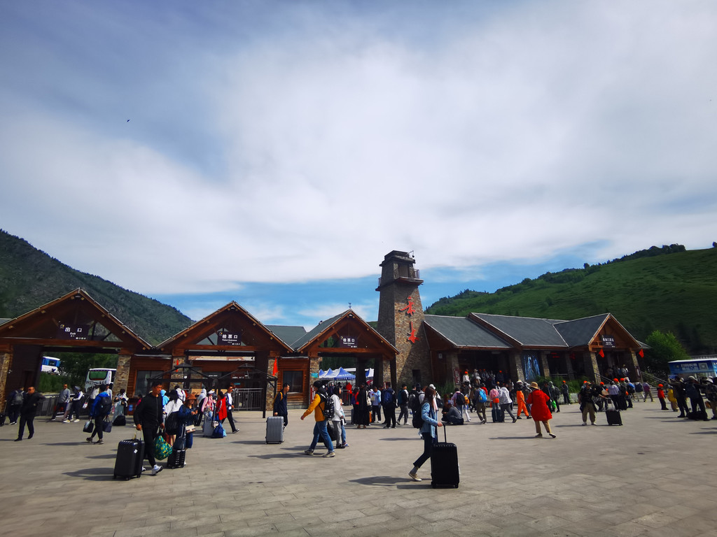 吃完早餐后,10点多退房,这个时候新一批大军已进入禾木,大约11点出头回到禾木门票站,驱车前往喀纳斯风景区的贾登峪门票站,车程约1小时。进入喀纳斯风景区的交通相对禾木复杂一点,首先自驾车将车子停放在贾登峪立体停车场(连续停放24小时封顶20元,收费相对合理,不算贵),停车场旁乘坐免费摆渡公交约5分钟到达贾登峪门票站,下车穿过一段大约500米的路(还好有屋顶,不然得晒死)到达售票处(在这里要夸下喀纳斯门票站的售票人员,很仔细认真的给我们讲解了喀纳斯往返白哈巴如何购买,以及注意的时间点),刷购票的身份证进场,乘坐景区区间车至喀纳斯景区换乘中心,车程约1.5小时,会经过喀纳斯三湾但是车辆不停靠(区间车从换乘中心出来的方向会停靠三湾)。