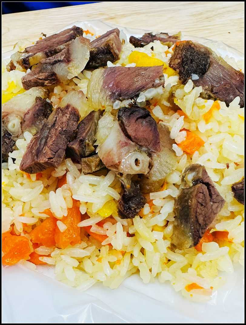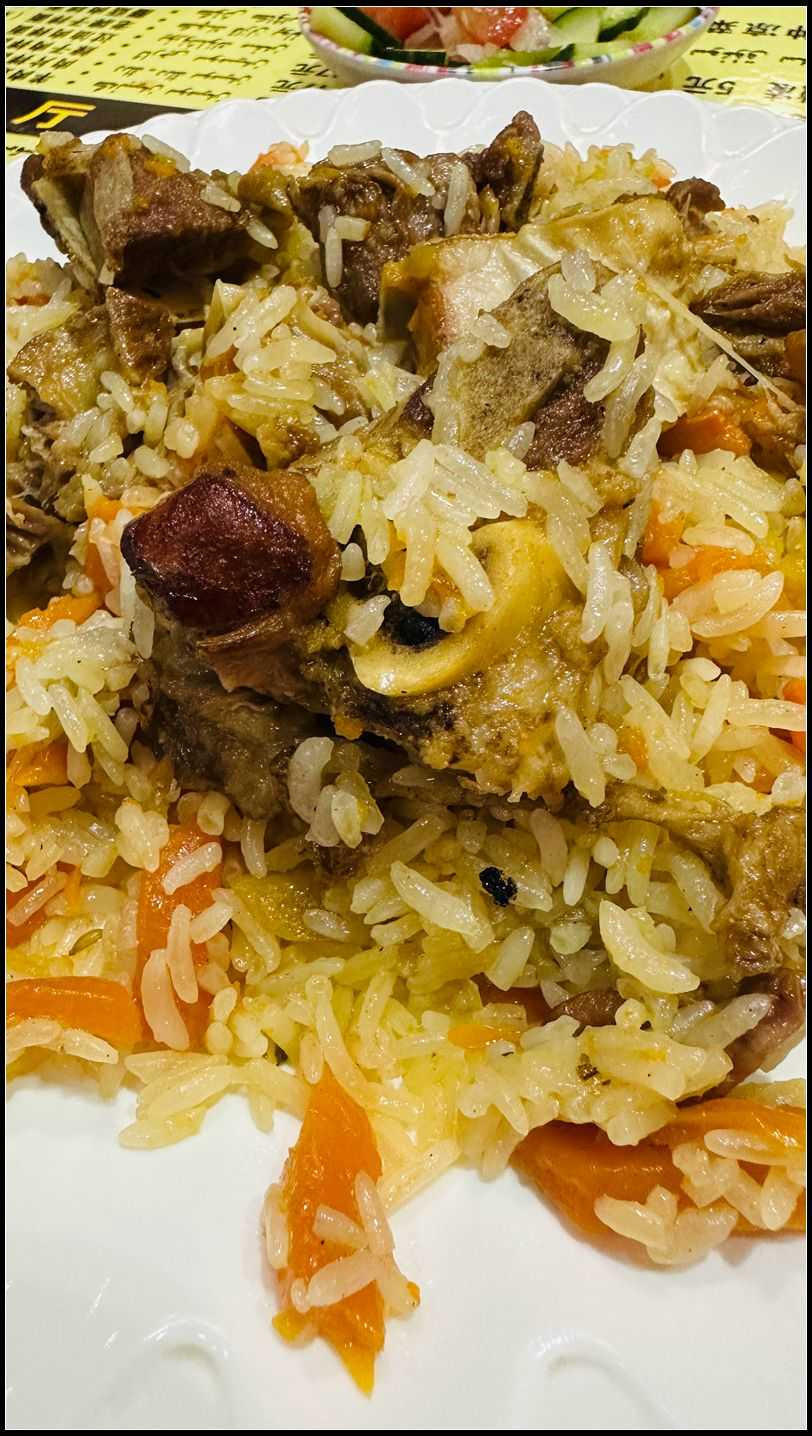每个人免费提供一份手抓饭和一碗面条,还有一碗酸奶。