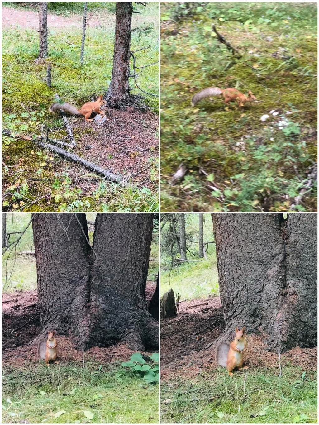 小松鼠有点害羞,但并不怕人。即使注意到我们的凝视,也不妨碍它在树上树下跳来跳去找果子。还好在随身带了些糖果,小动物对高热量的糖果都没有抵抗力,小松鼠快乐地抱着糖果啃啊啃。