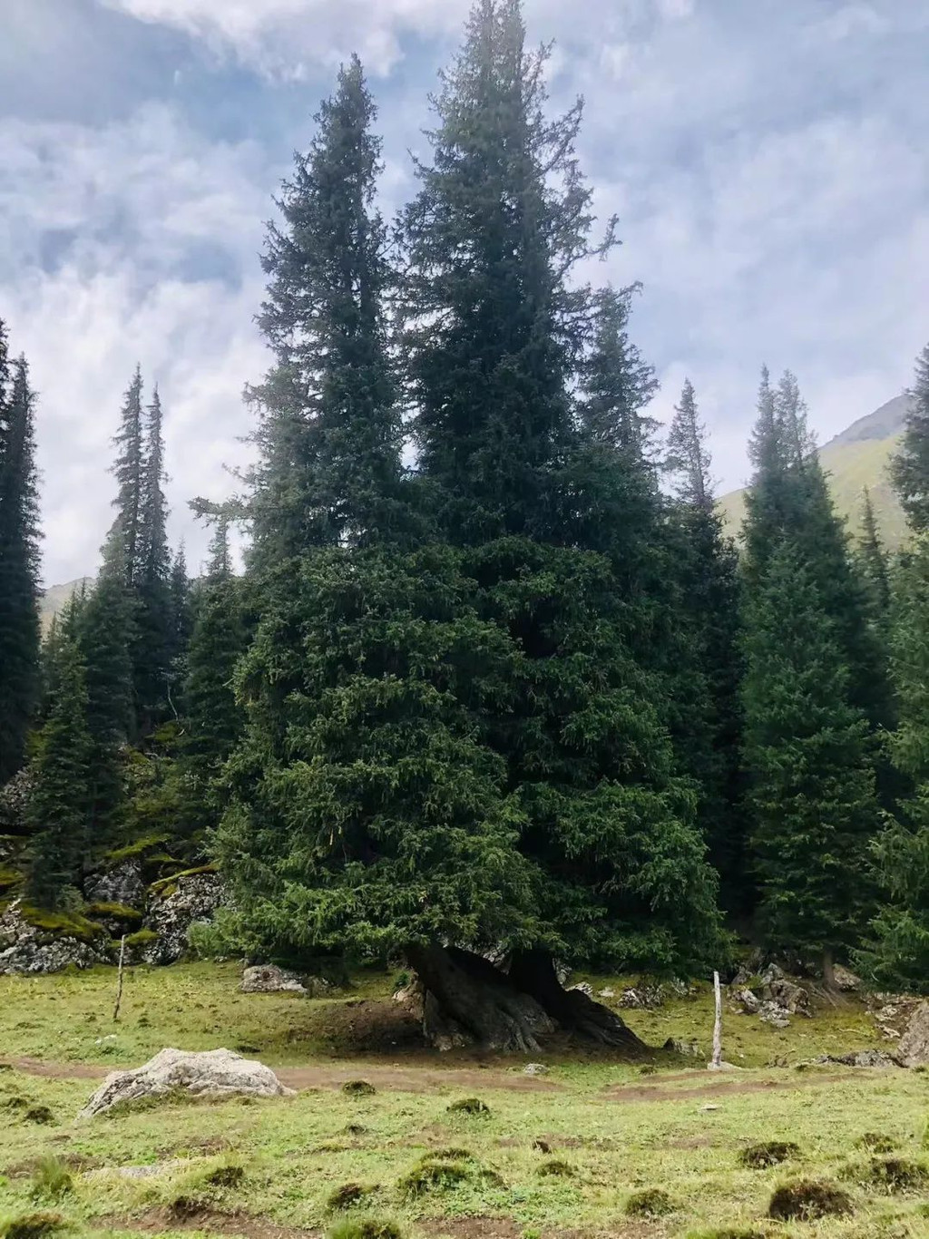 满眼的云杉、冷杉,高大,笔直,树与树的间距足够人在里面轻松穿梭。不像南方的林子难容人行。