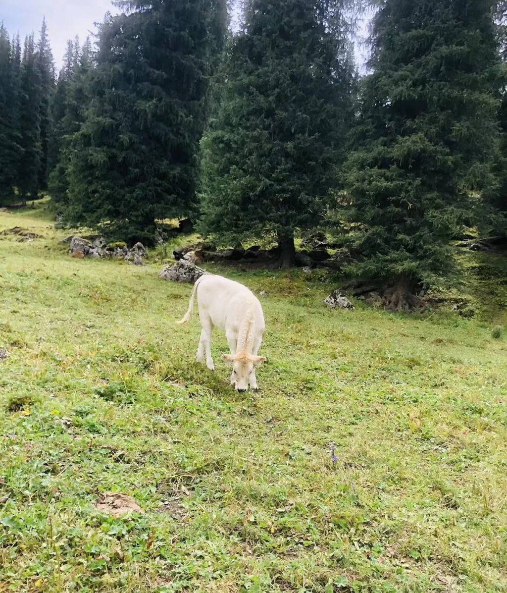 路边的小牛也在散发萌力。不像牧场草原,牛羊动辄绵延数里,夏塔河谷的容纳力有限,山谷只散落着一二十头牛,这让整片区域显得更加美丽宜人。有好多稚嫩的小牛仔仔,瞪着大眼睛蛊惑你去摸摸它,但是一走近他却娇羞地躲开了,你越追,它越躲,最只能隔着几米拍拍照了,哎~