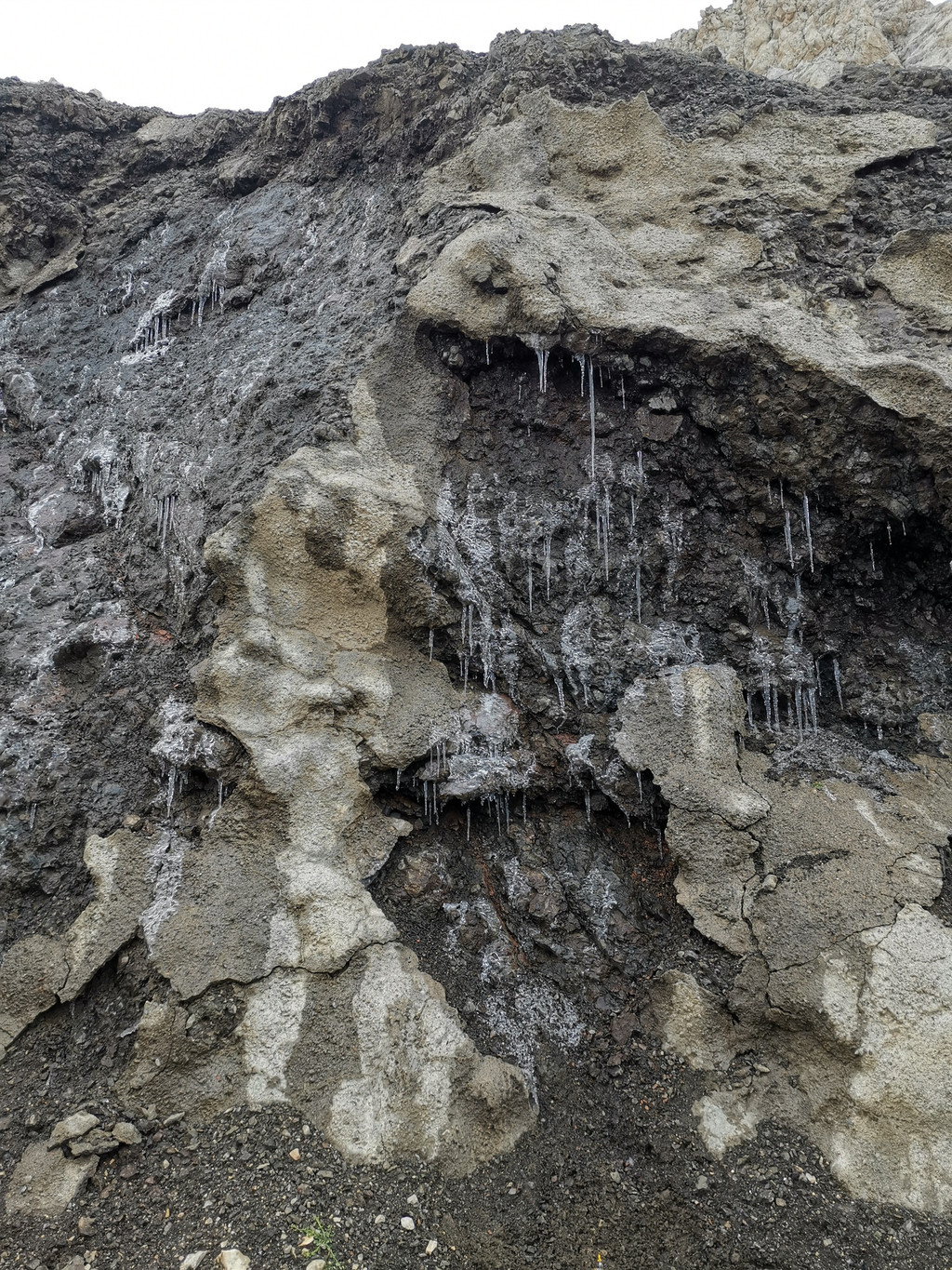 一路上草甸、森林,风景很美,过了白石峰后在山巅穿梭犹如驶进了云端。路上每隔一段距离就设有停靠站,在保证安全的前提下可以随时停车。在过了白石峰不远,看到了崖壁上很明显的冰棱子,还有一两分钟下得很小的雪花,风吹得人瑟瑟发抖,也算是体验了一回夏日里的冬季。