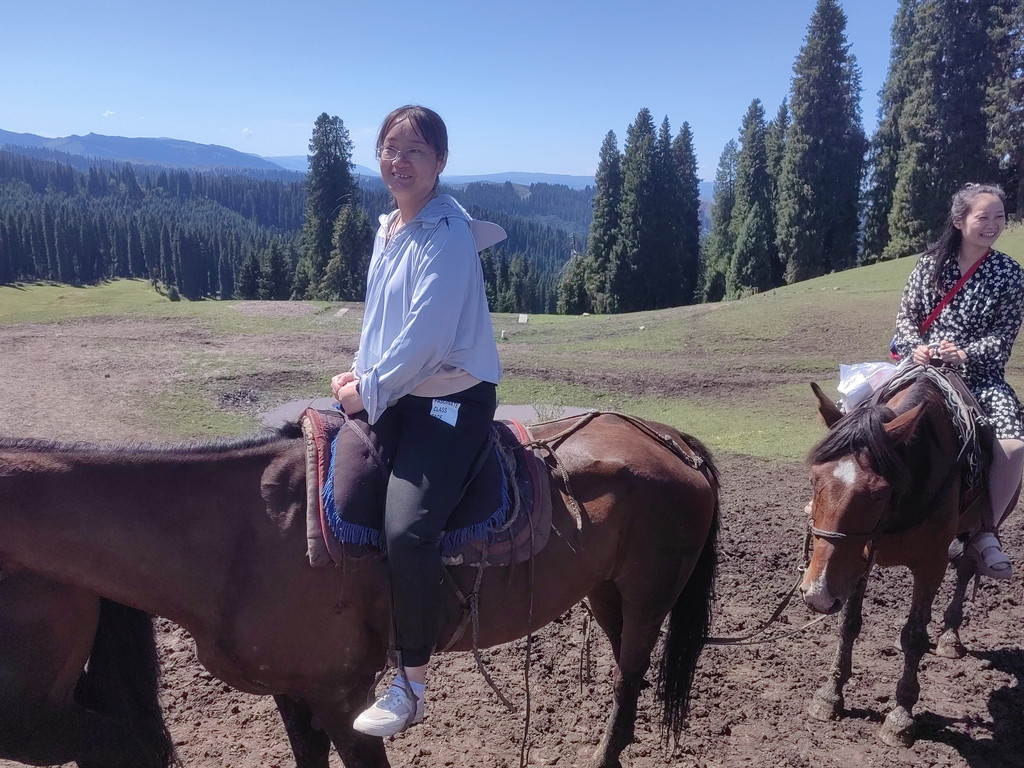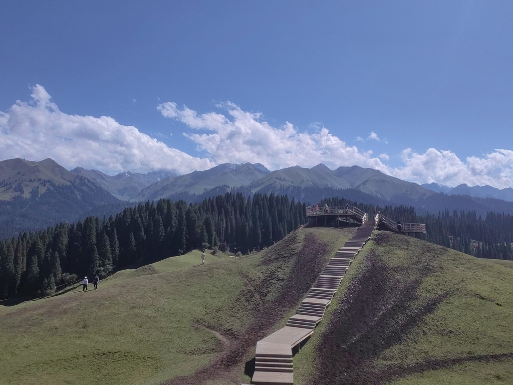 从齐孟德到观景台,是山路,有木栈道,可以骑马或者步行上山。骑马80元/人,小朋友有牧民带着共骑一匹马还是比较安全,走的是木栈道旁边的马道,算是满足了骑马的愿望。上山途中大部分路还是比较好走,偶尔有点下坡路,这时在马背上就有点紧张害怕了。
