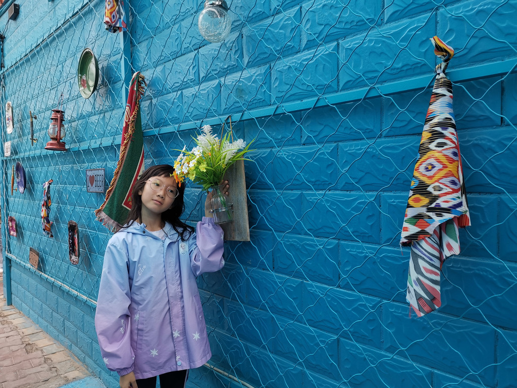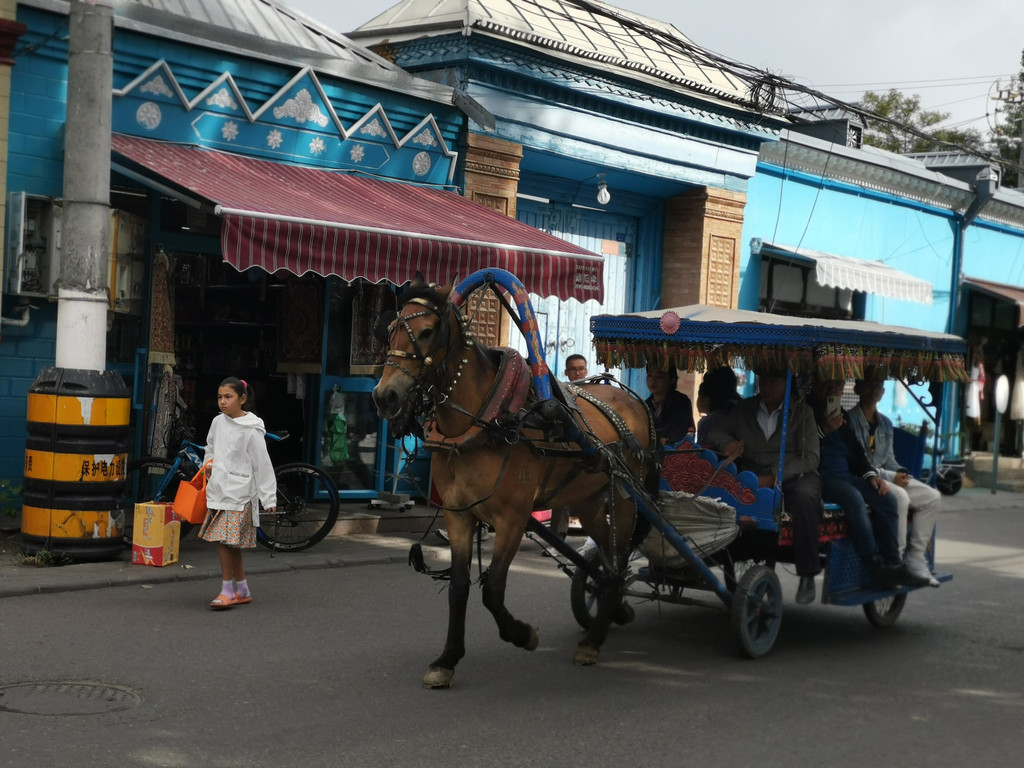 喀赞其民俗区以蓝色基调为主,比较有民族特色,还有一个特色就是坐马车游街。景区不需要门票,但马车需要150元/人。有马车经过的地方气味不太好,我们选择了步行。走走停停,逛逛小店,拍拍照,听当地人说话(虽然听不懂),主要就是一个随心。