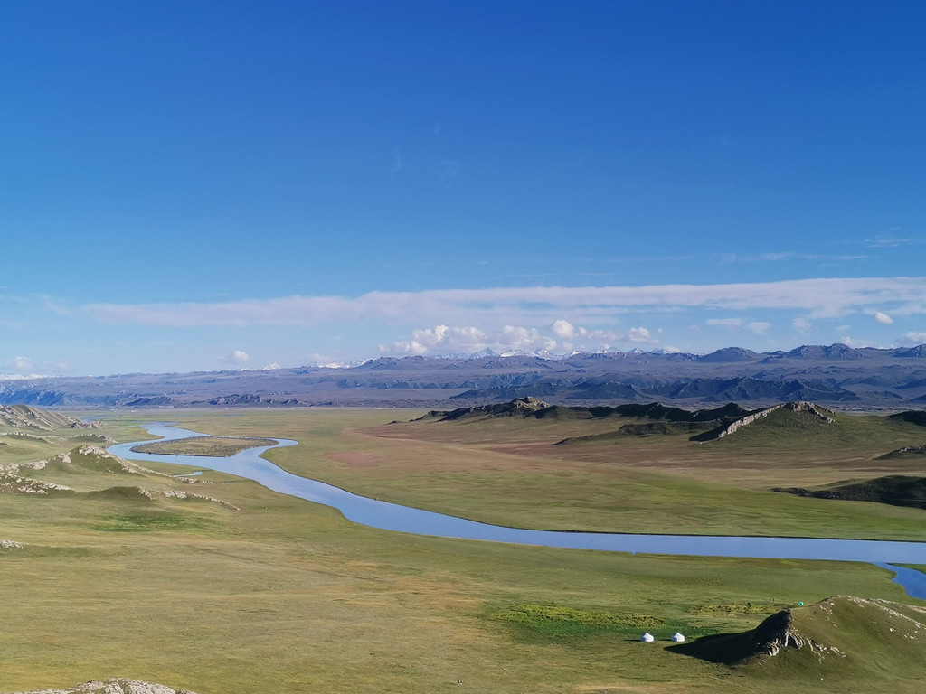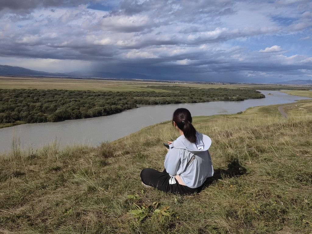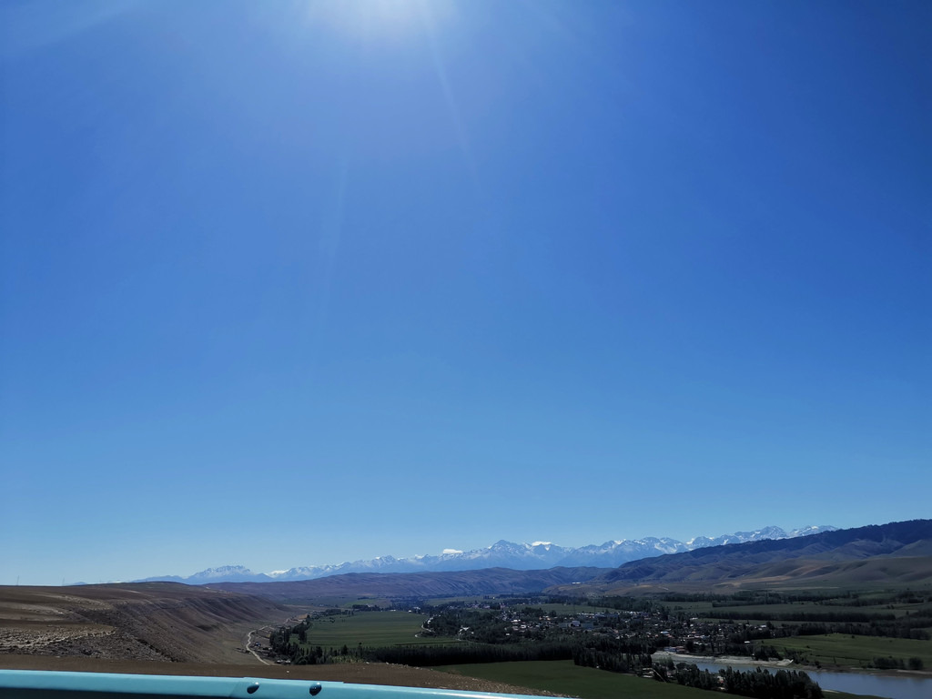 然后继续坐区间车到下一个站点,爬到山坡上去看远处的雪山、草地、还有脚下的特克斯河,将身心放松和放空,坐在草地上享受一份宁静的美好。