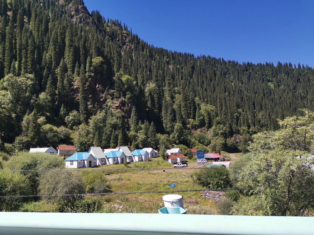 下到喀峰大本营后,一路直奔东沟出口,路上没再停留,只让眼睛留住一路美景,感叹最多的就是“在这搭个帐篷住下可真好”。经过一个多小时车程,到达新源县住宿。